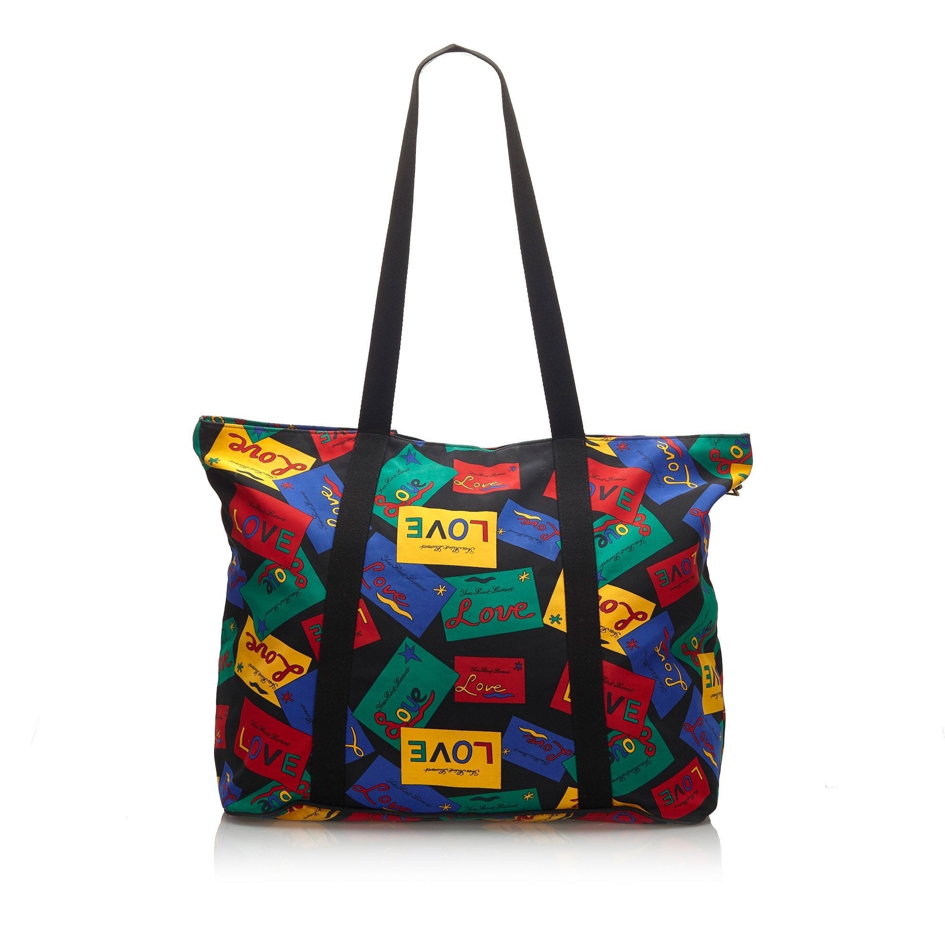 Pre-Loved YSL Black Nylon Fabric Love Printed Tote Bag France