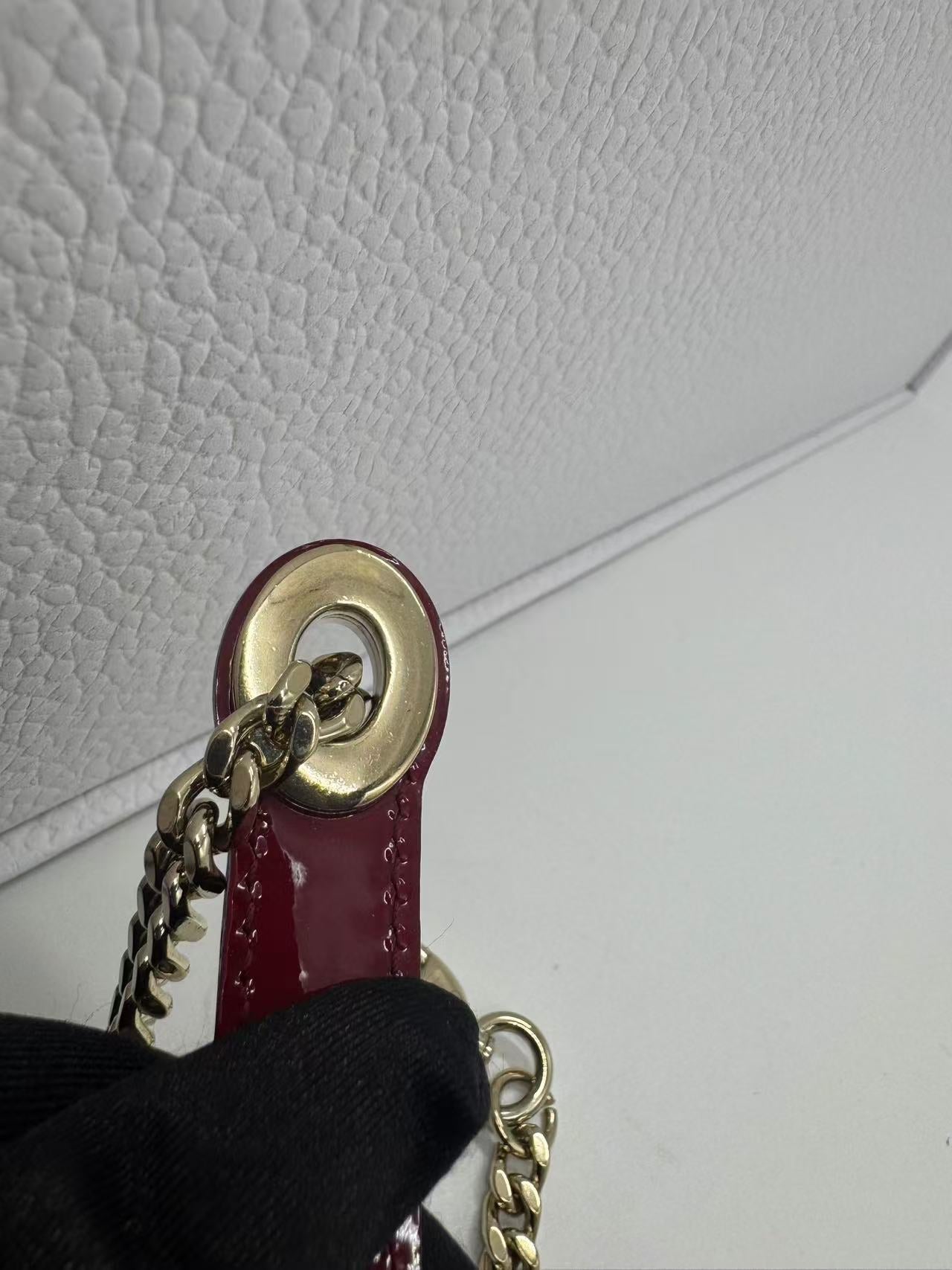 Pre-owned Certified Dior Mini Lady Dior Dark Cherry Red Patent Leather with Golden Hardware, 2020, w/ full set - box, dust bag, chain