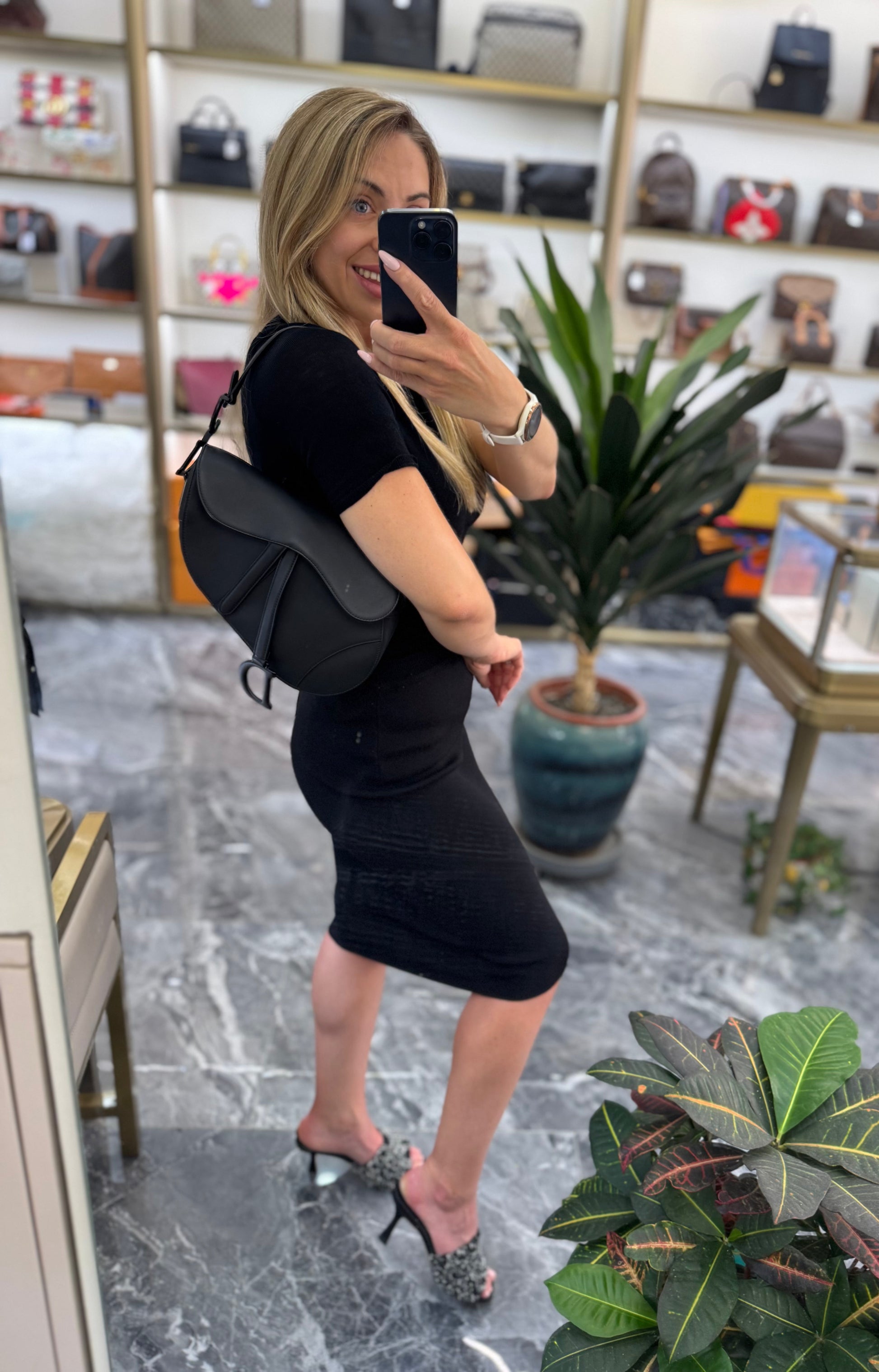 Pre-owned Certified Dior Saddle Medium So Black Matte Calfskin, 2022, w/ dust bag