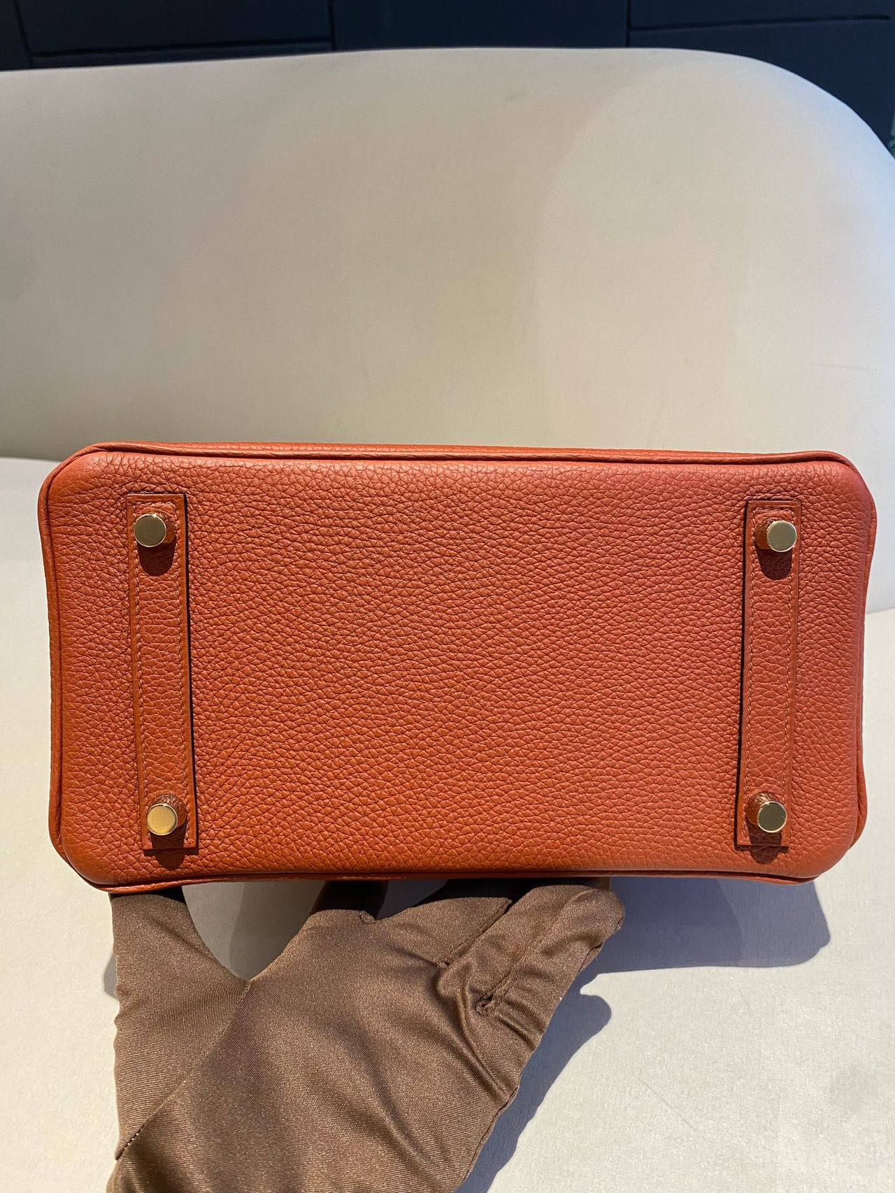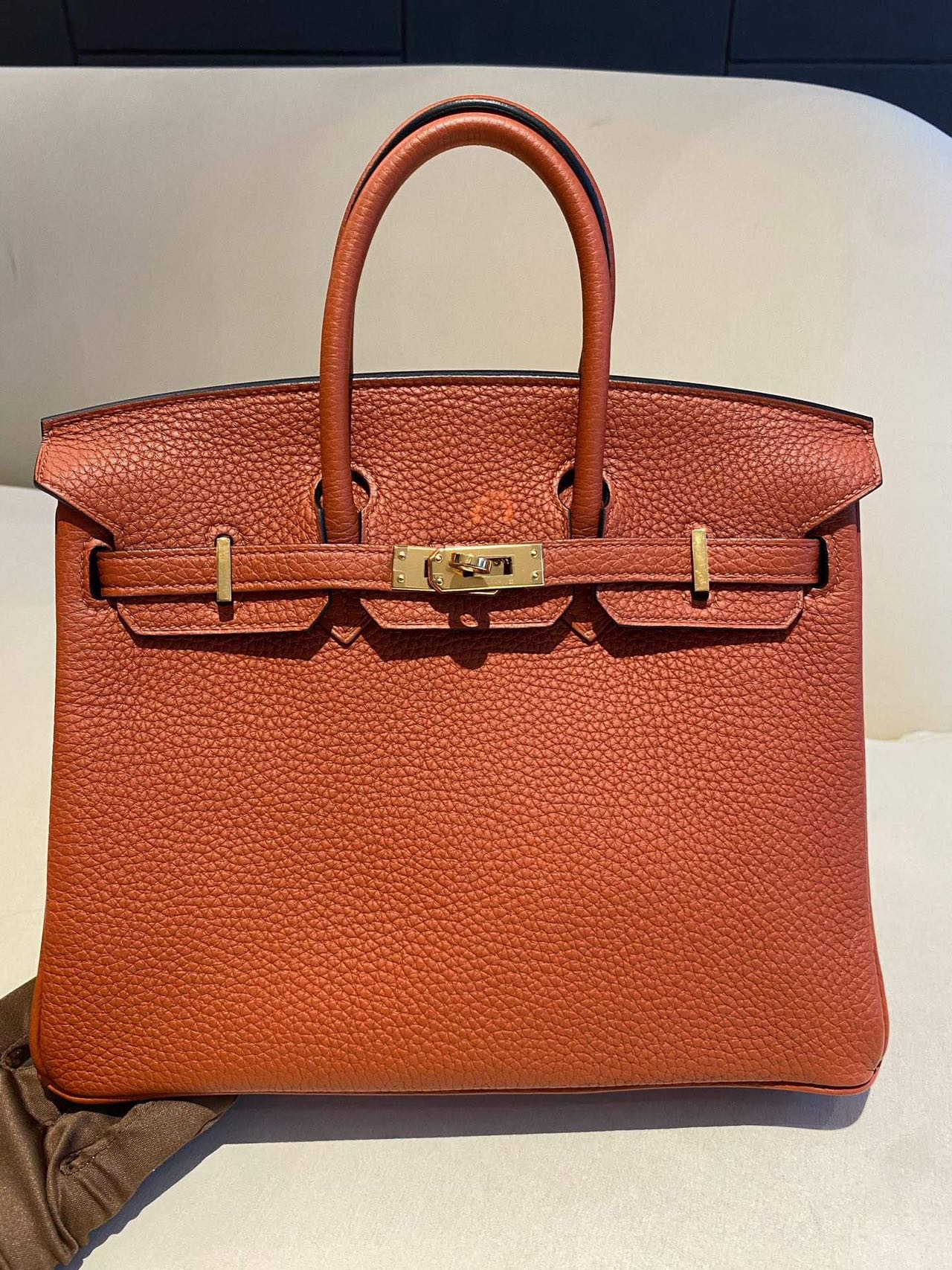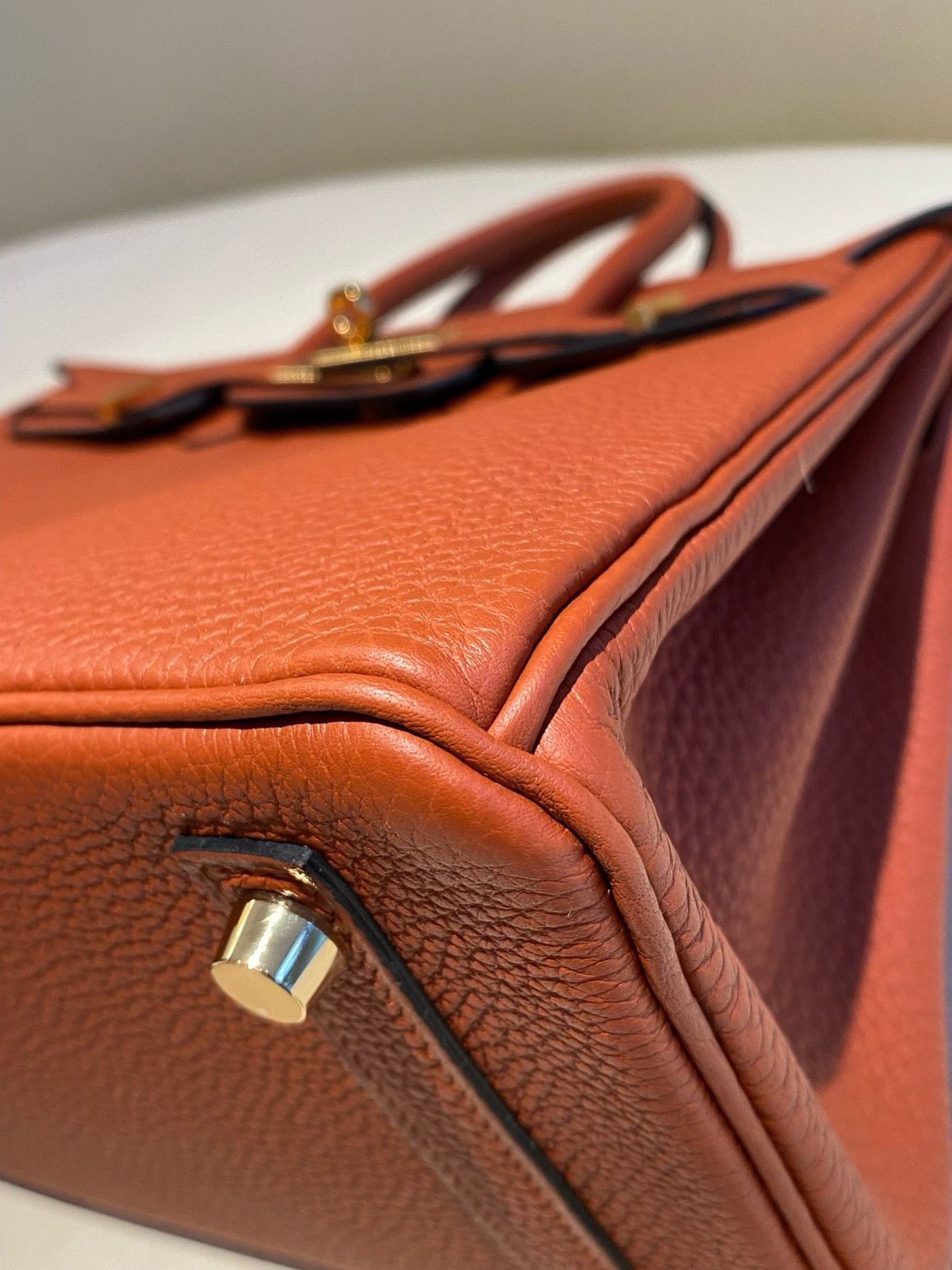 Pre-owned Certified Hermes Birkin 25 Cuivre 6C Togo Leather Golden Hw, 2016 (X), w/ lock & key, dust bag