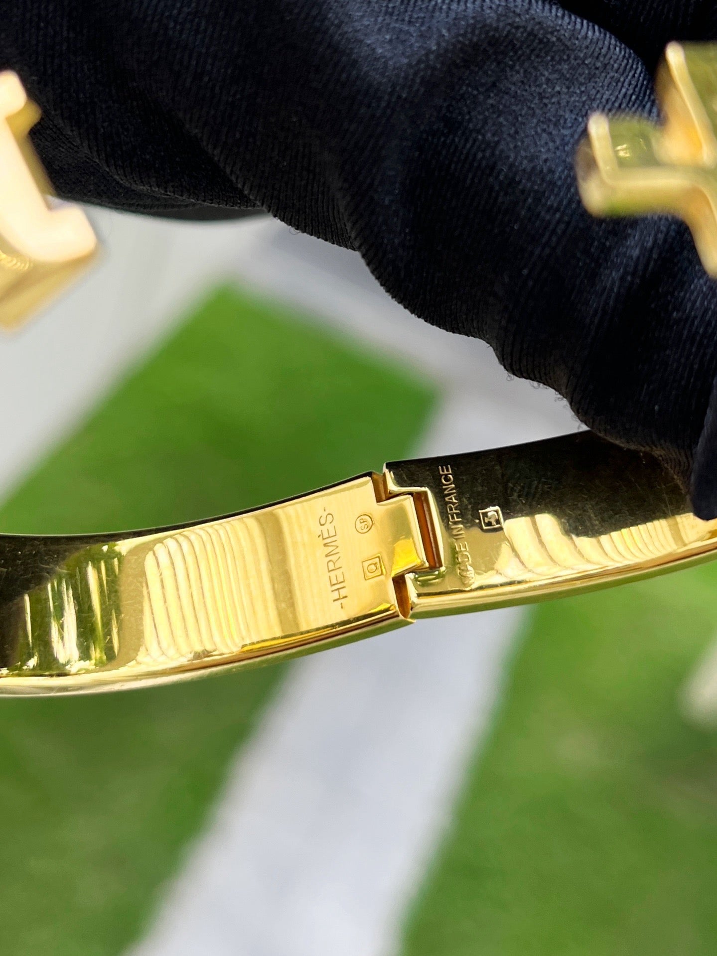 Pre-owned Certified Hermes H Click Enamel Red Bracelet with Golden Hw, Small Size