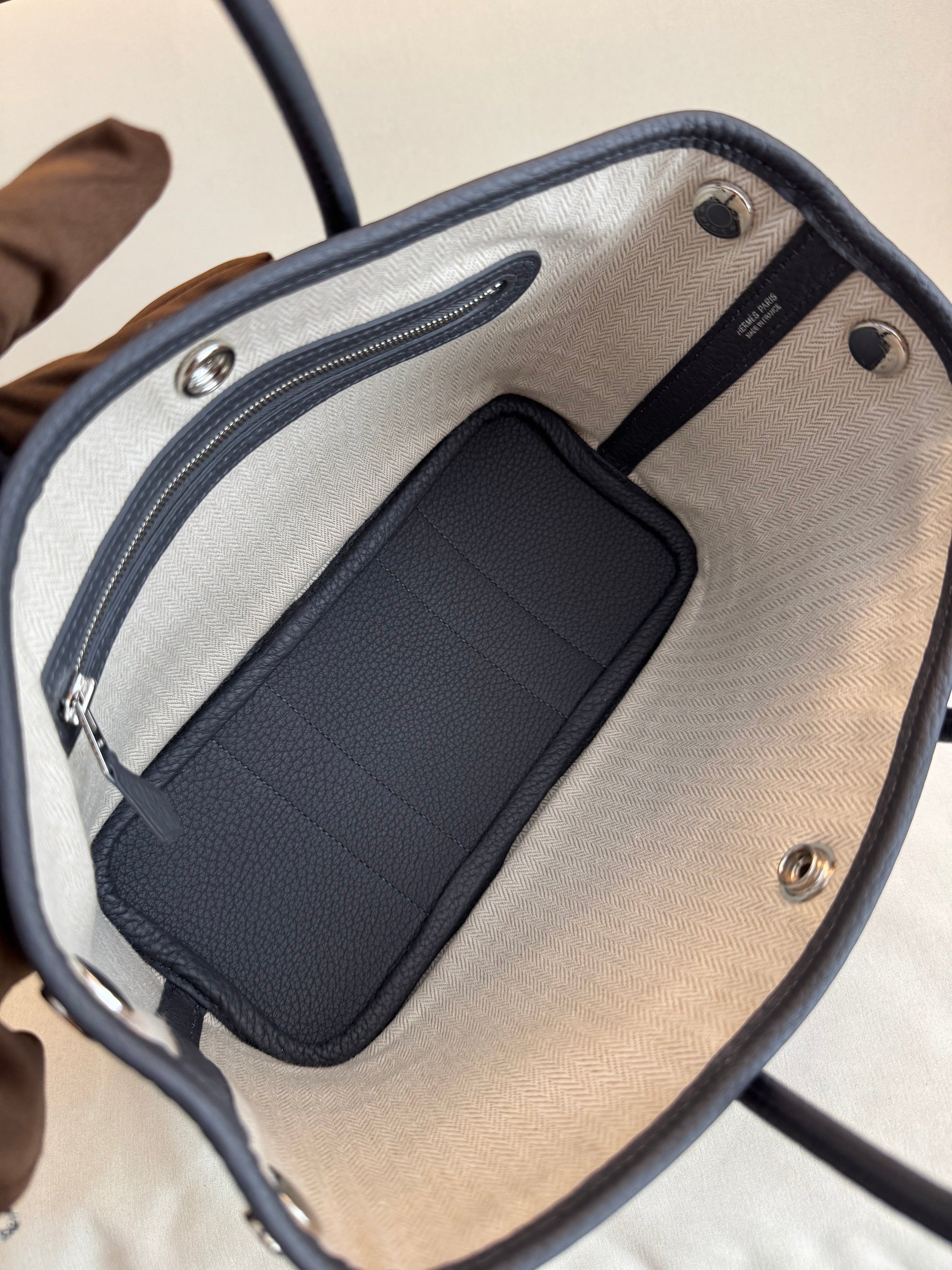 Pre-owned Certified Hermes Mini Garden Party 23 Clemence Leather 85 Ardoise Grey, 2024 (W), Not Used, Full Set - Box, Dust Bag