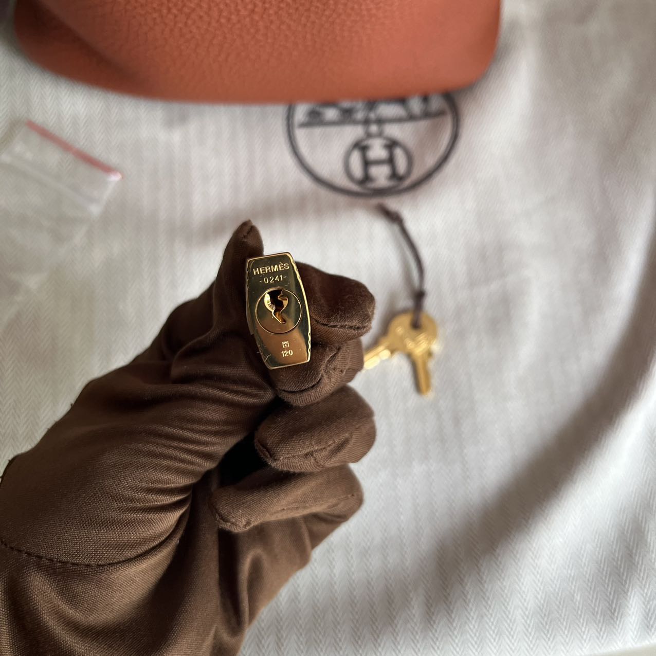 Set: Full Set - Hermes Box, Dust Bag, Lock & key, Preloved Branded dust bag, Entrupy Authenticity Certificate