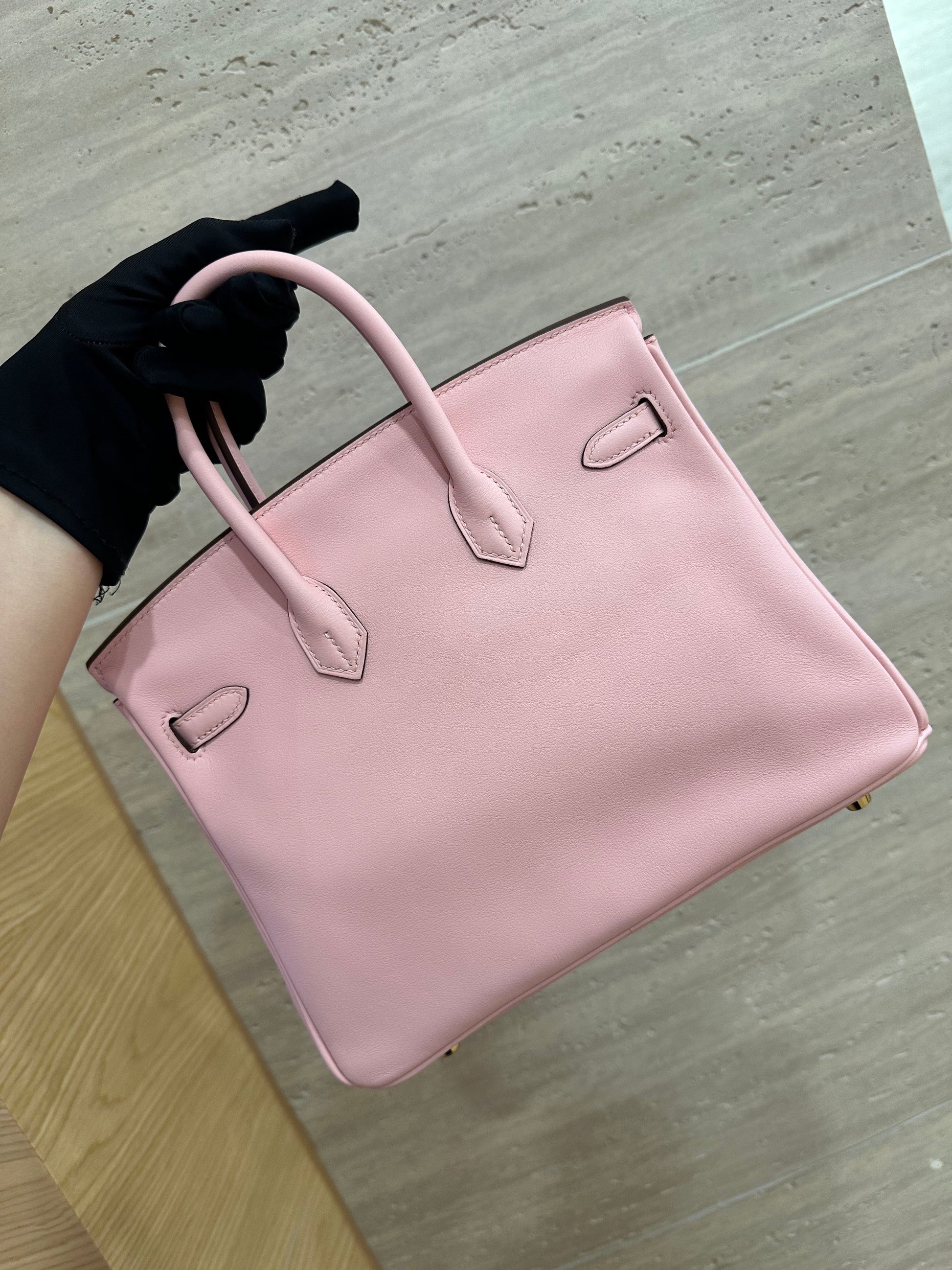 Pre-owned Hermes Birkin 25 Sakura Pink Swift Leather Golden Hardware, 2015, Full Set