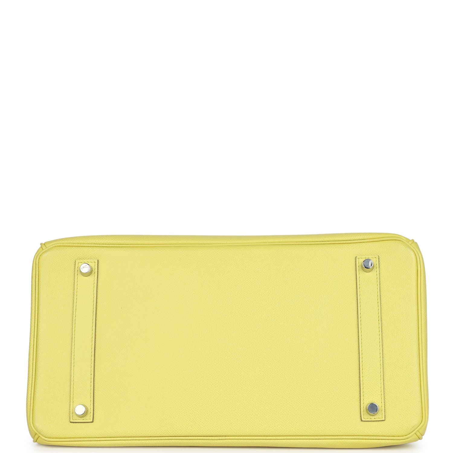 This Birkin is in Soufre epsom leather with palladium hardware and has tonal stitching, front flap, two straps with center toggle closure, clochette with lock and two keys, and double rolled handles.