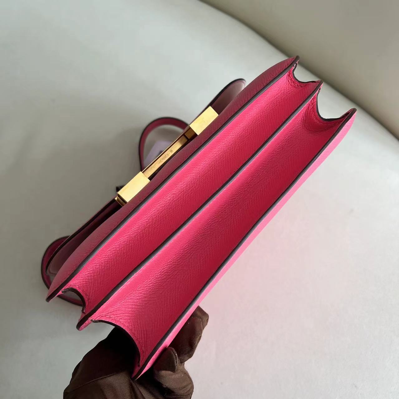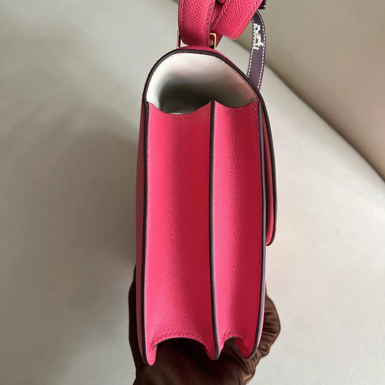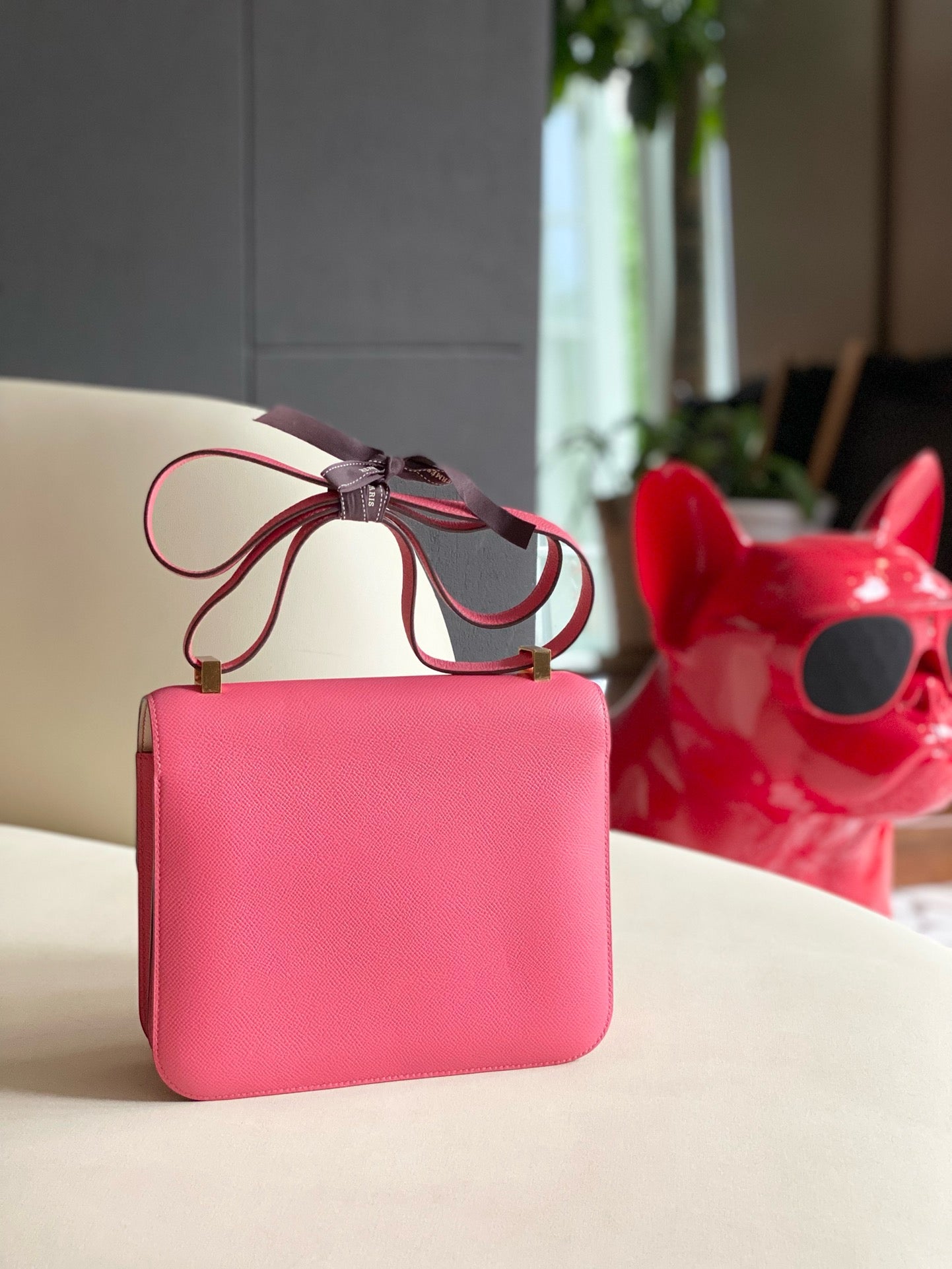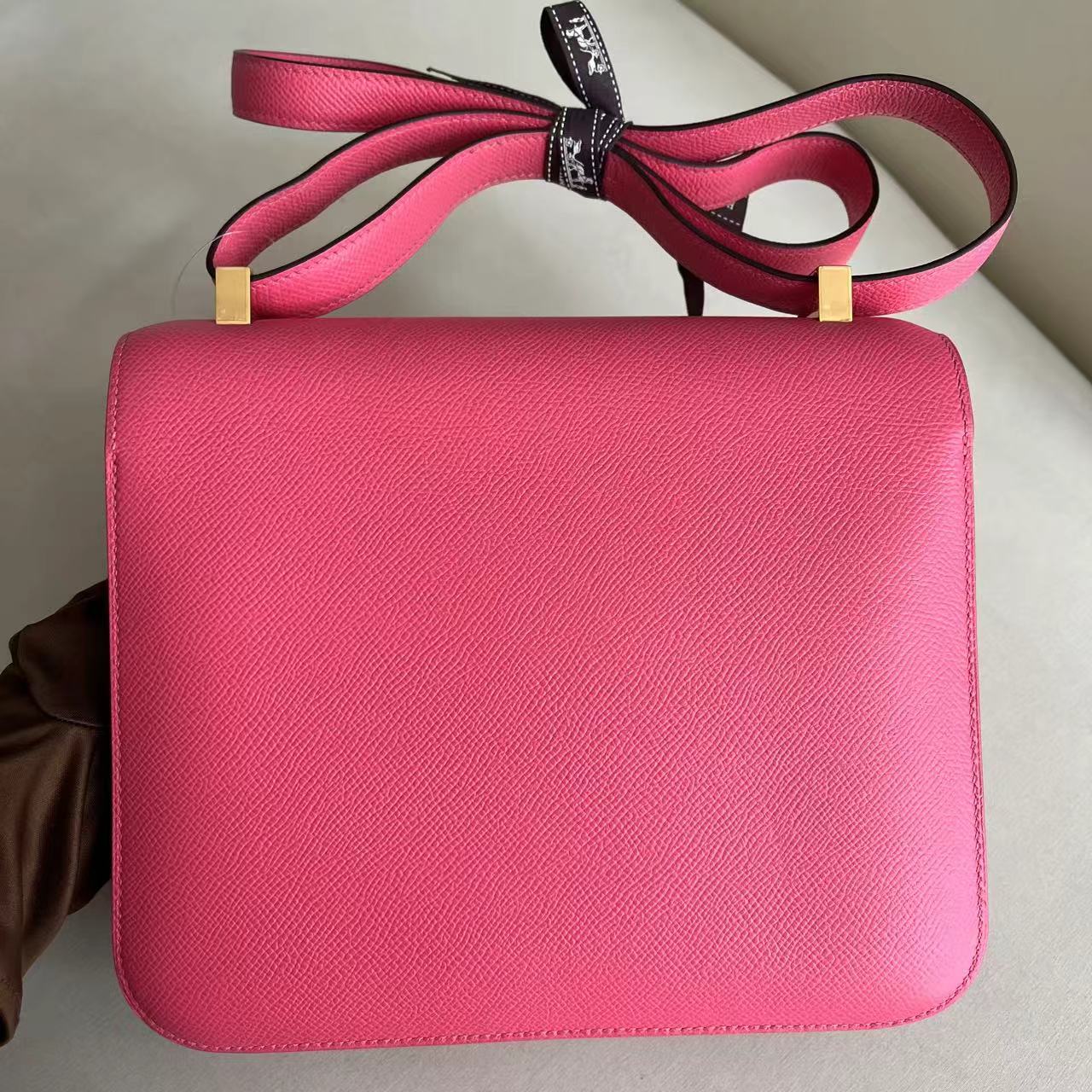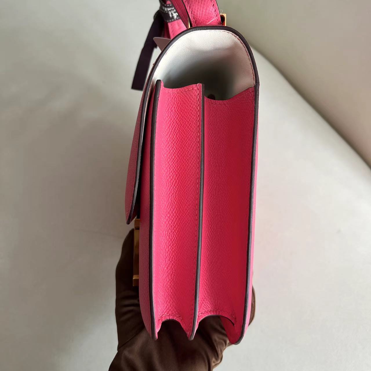 Pre-owned Hermes Constance 24 Horseshoe Stamp Verso Rose Azalee & Craie Epsom, Golden hw, 2017, w/ dust bag