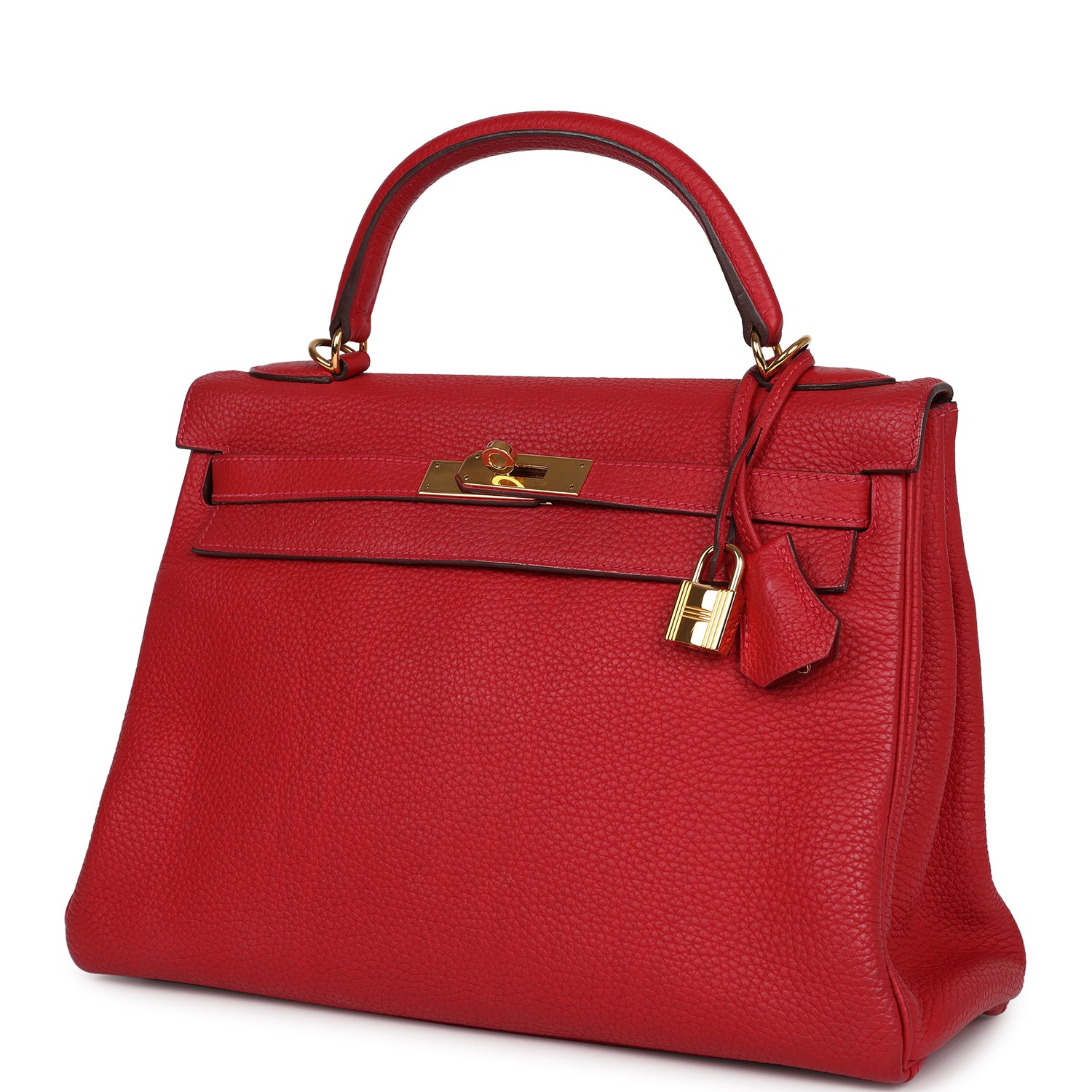 Pre-owned Hermes Kelly Retourne 32 Vermillion Clemence Gold Hardware