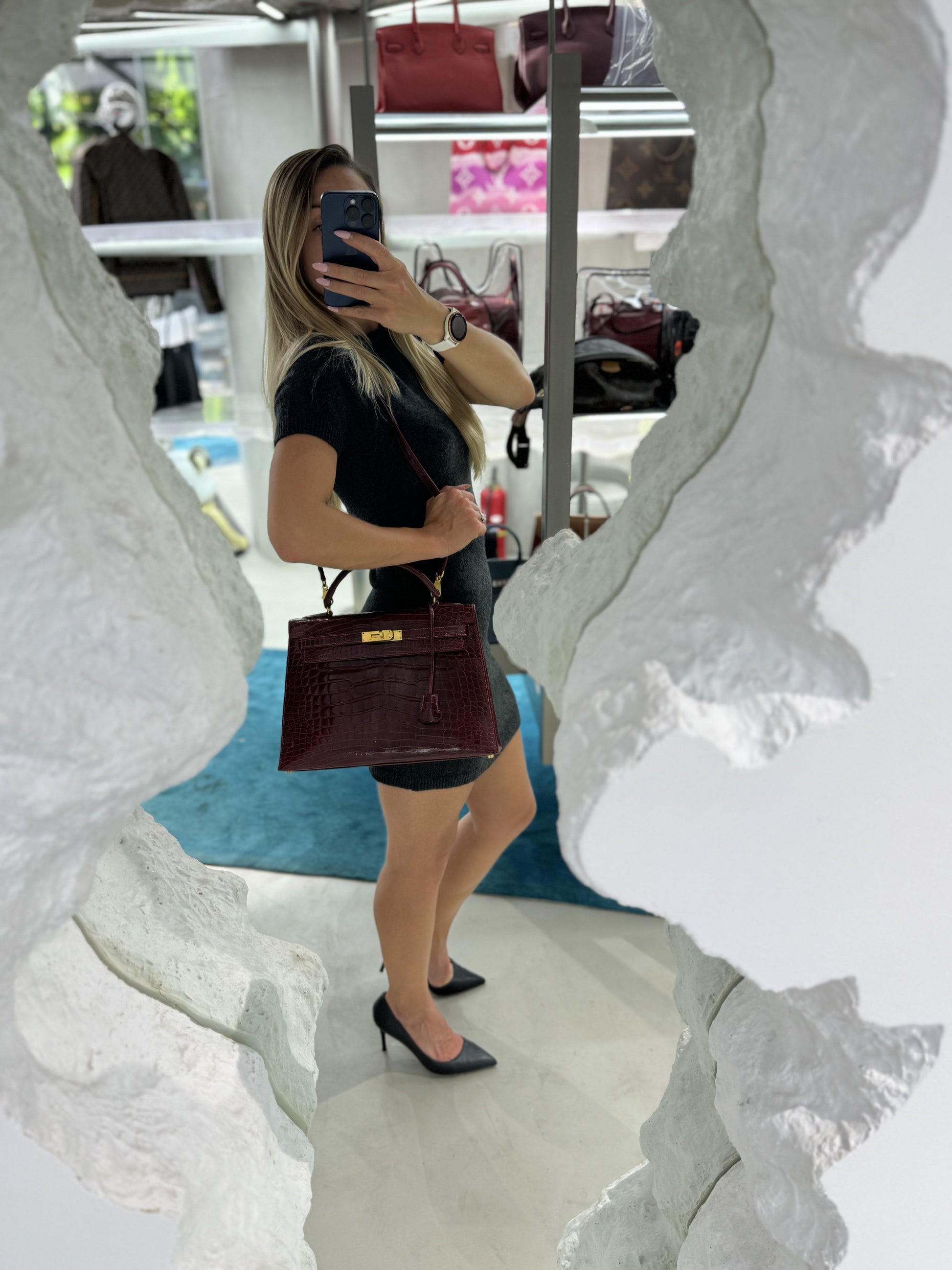 Pre-owned Hermes Kelly 32 Natural Rare Alligator 55 Rouge H Gold hardware, w/ key, Clochette (no lock), dust bag