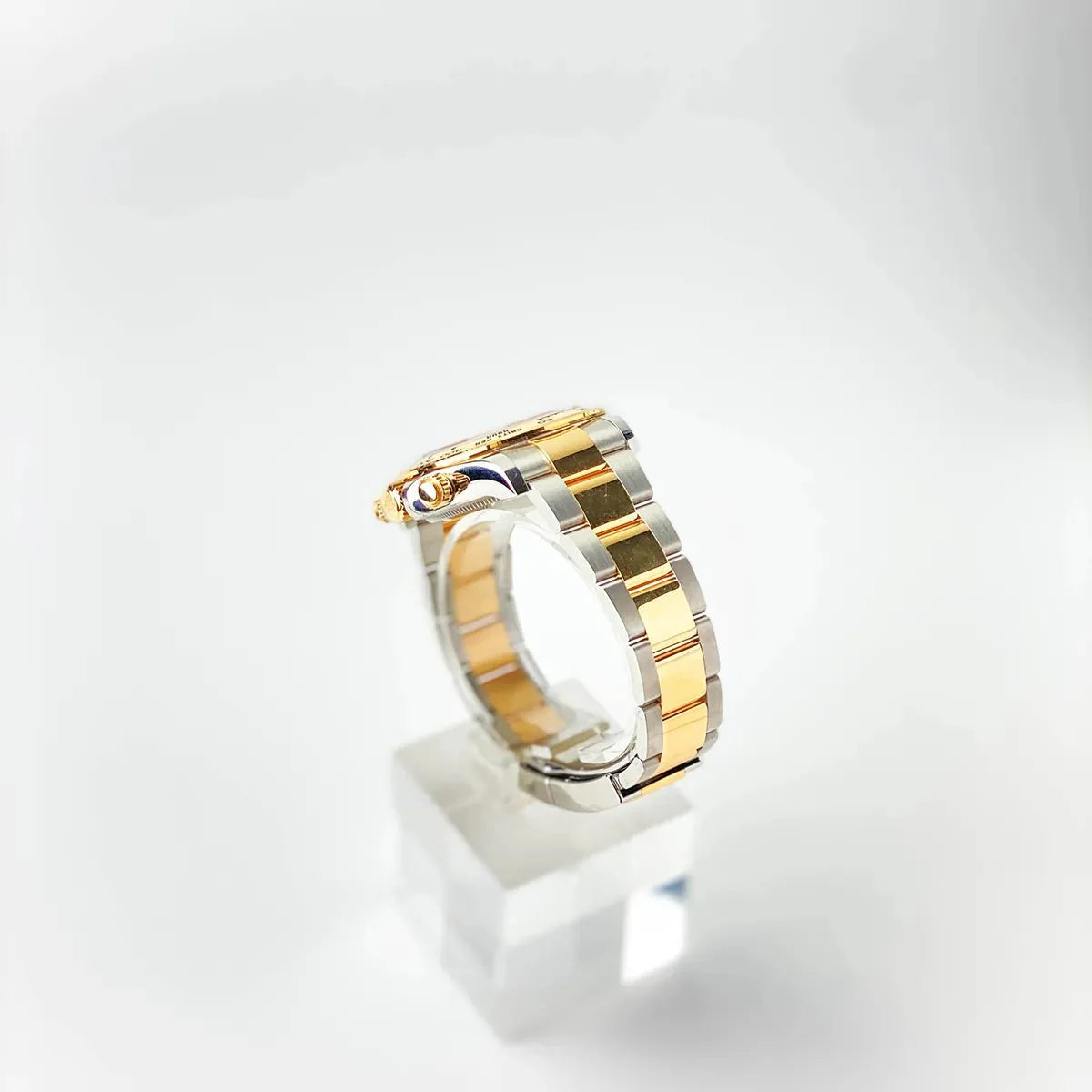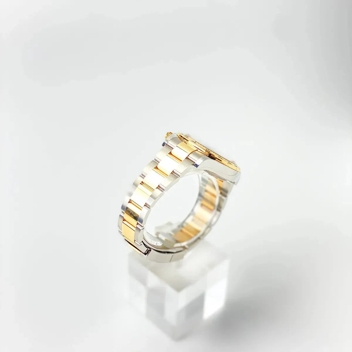 The stainless steel and gold Oyster bracelet with Oysterlock safety folding clasp offers maximum wearing comfort. The Daytona 126503 is a perfect blend of style and functionality, ideal for watch lovers and racing enthusiasts.