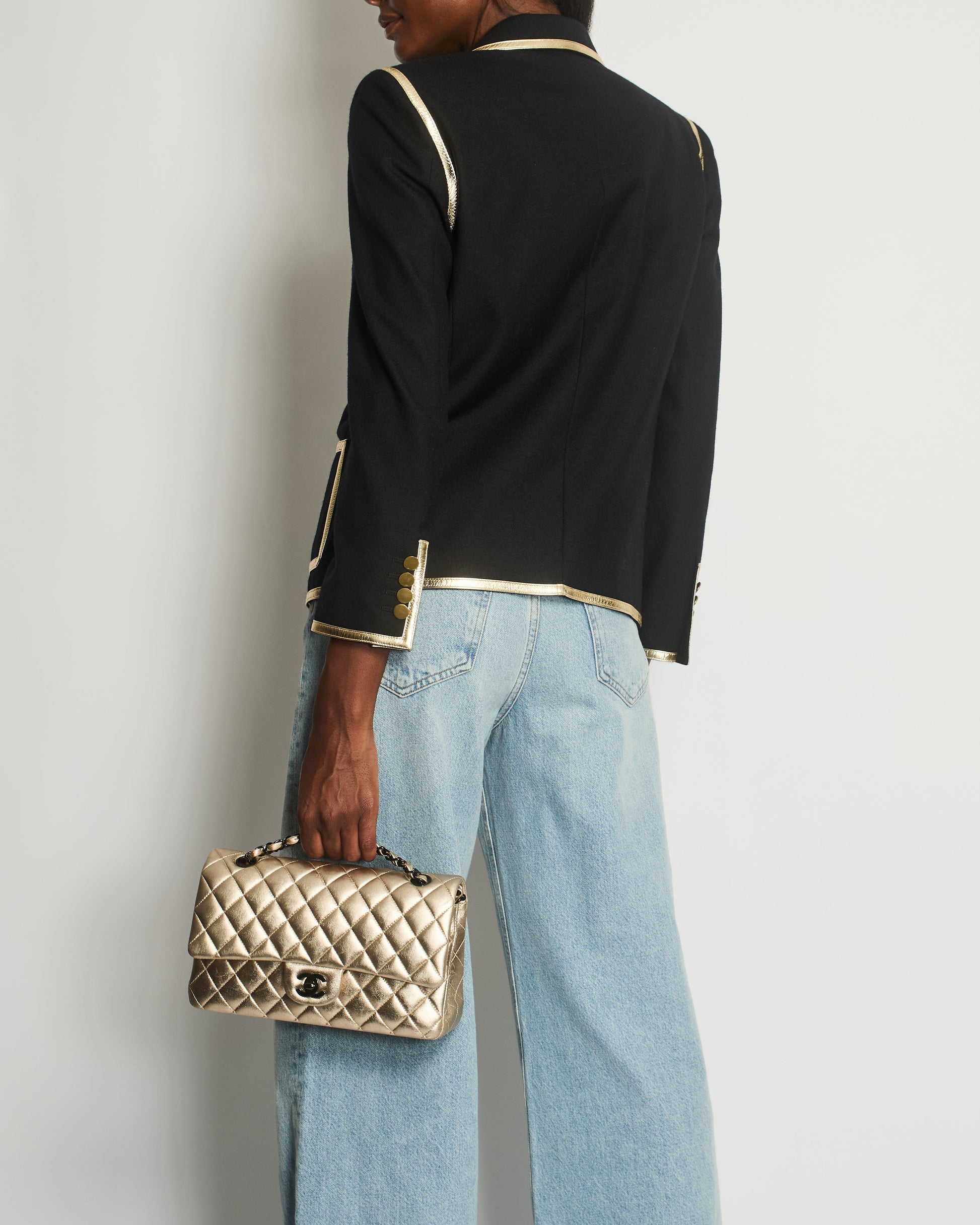 Saint Laurent Black Blazer with Metallic Gold Lapel & Antique Gold Buttons Details Size FR 40 (UK 12)