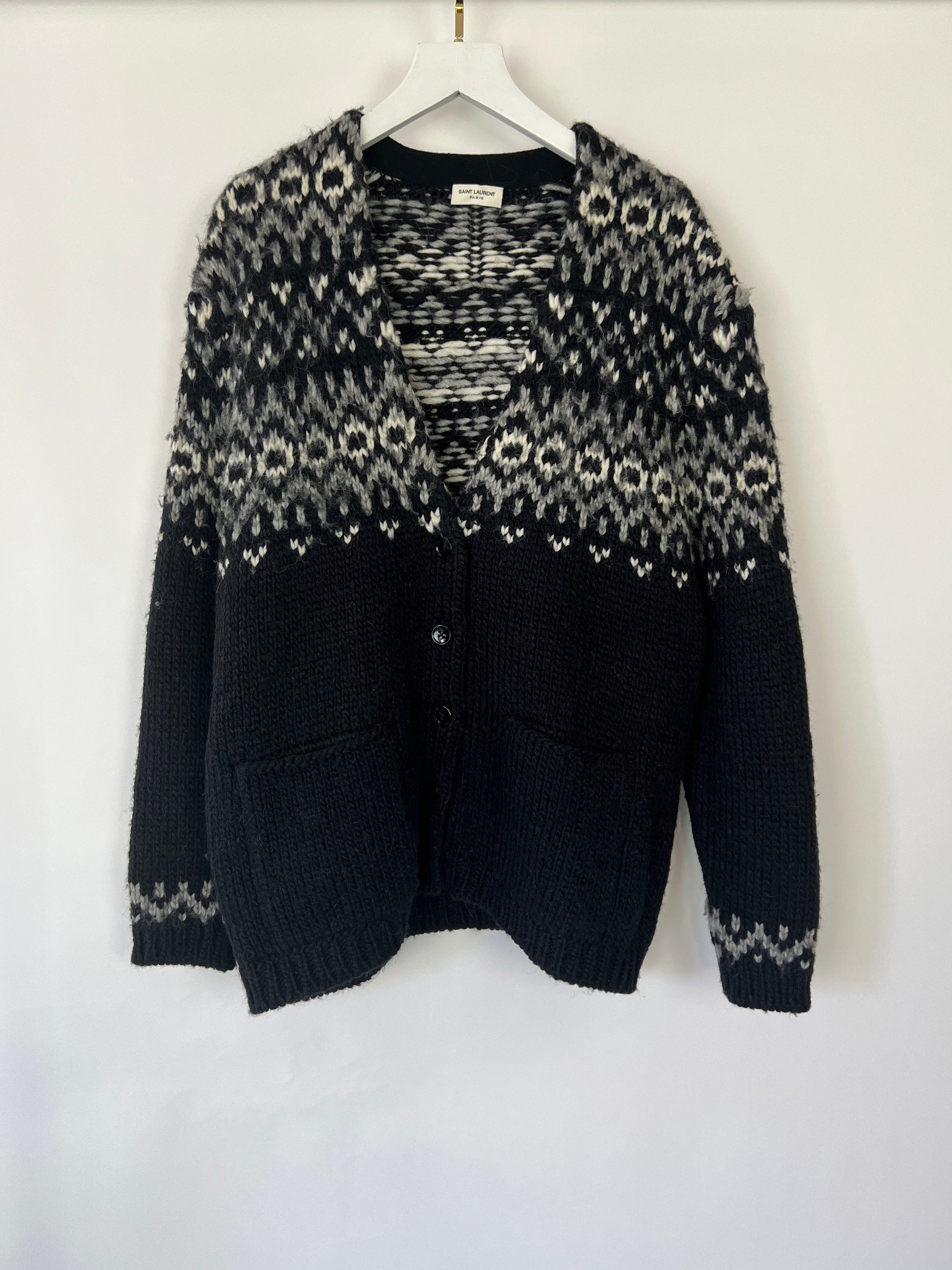 Saint Laurent Black & Grey Knit V-Neck igan Size S (UK 8)