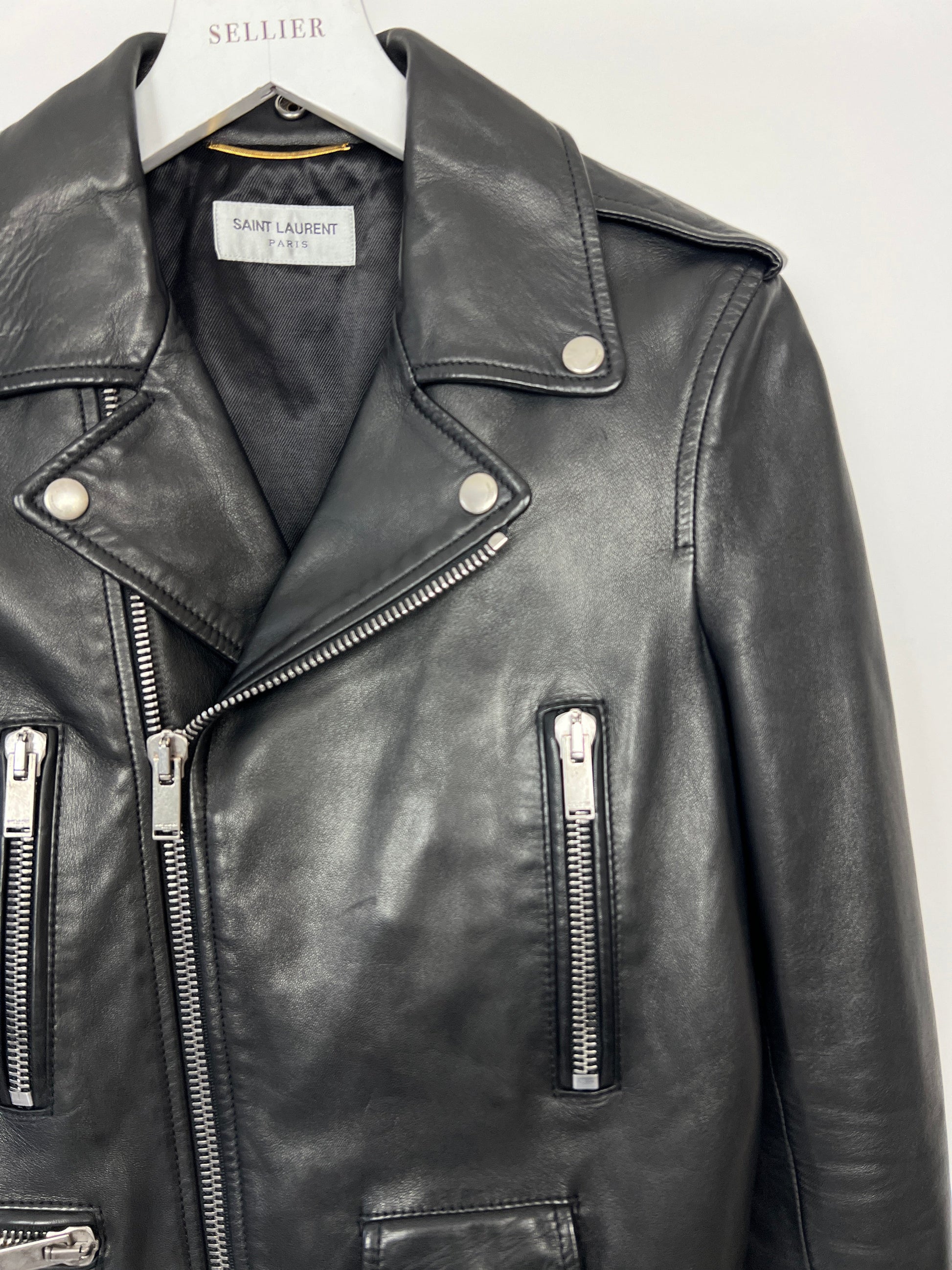 Saint Laurent Black Leather Biker Jacket Size FR 36 (UK 4)