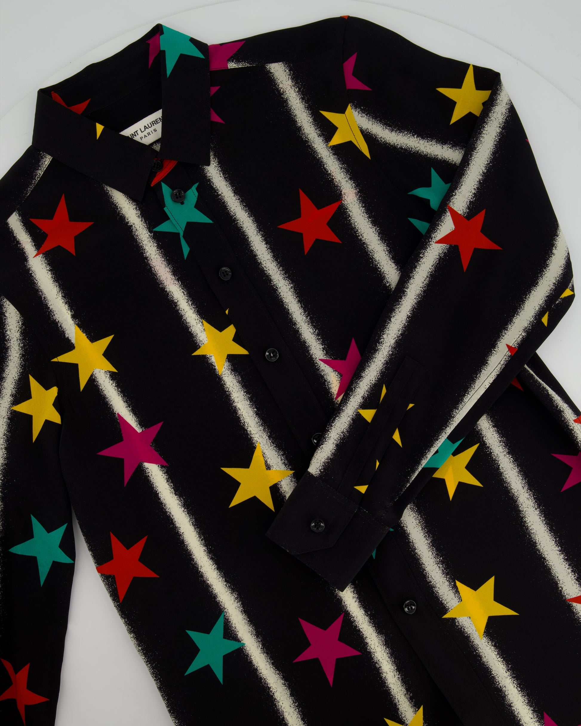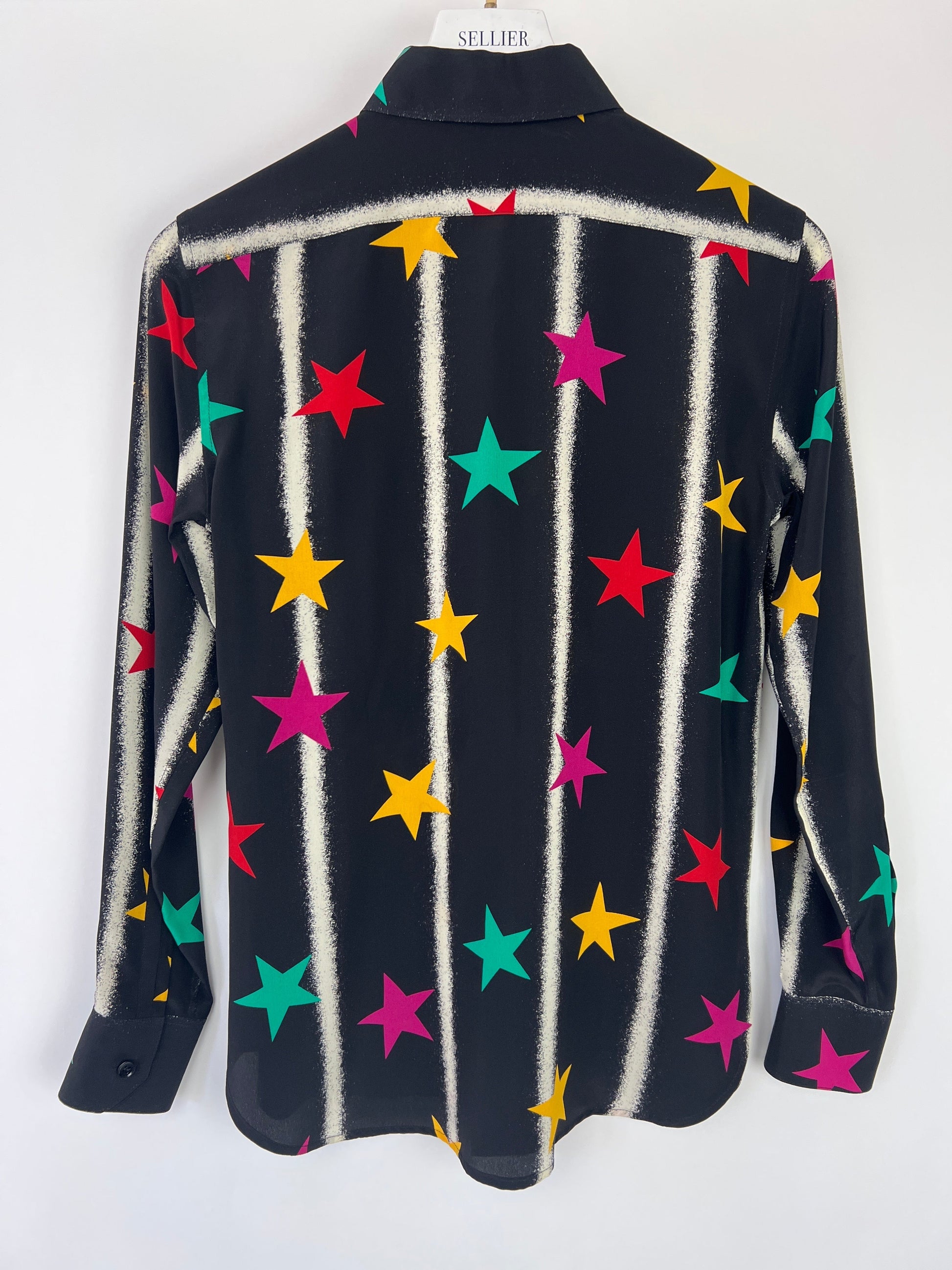 Saint Laurent Black Long-sleeve Silk Shirt With Multicolour Star Print Size FR 36 (UK 8)