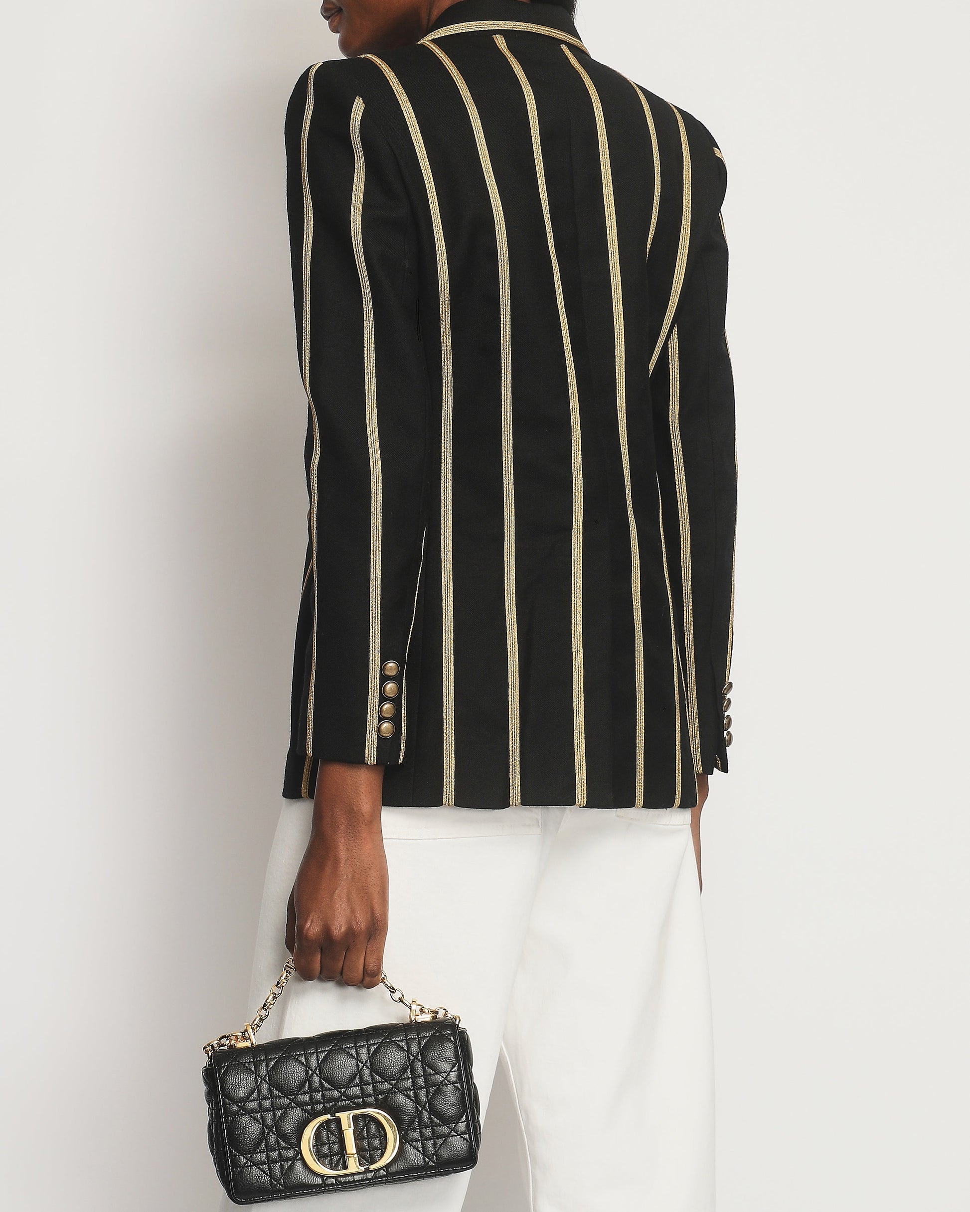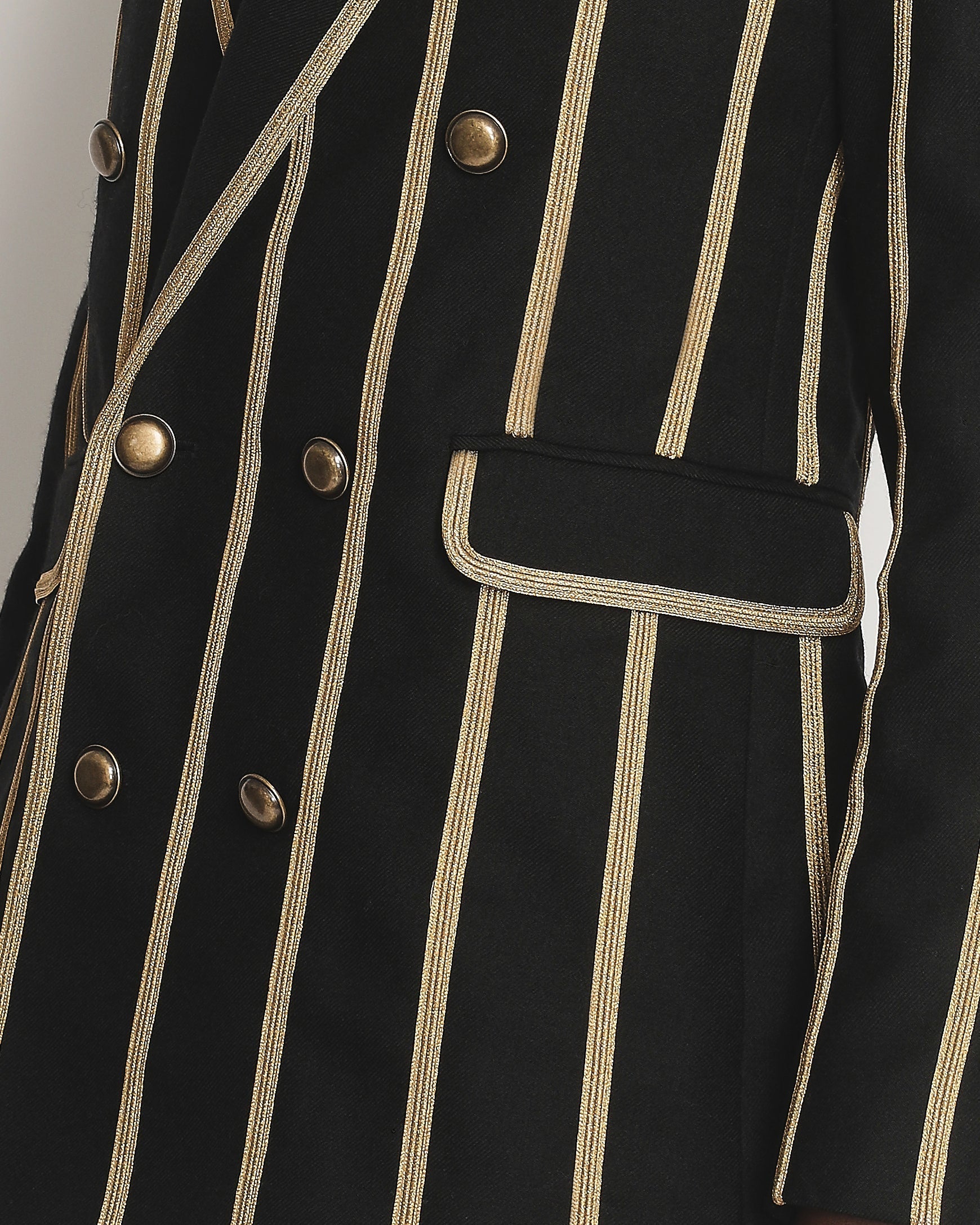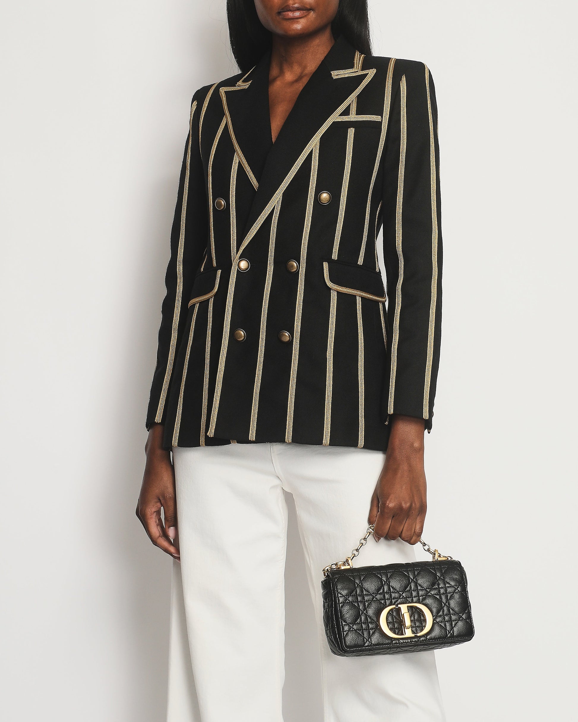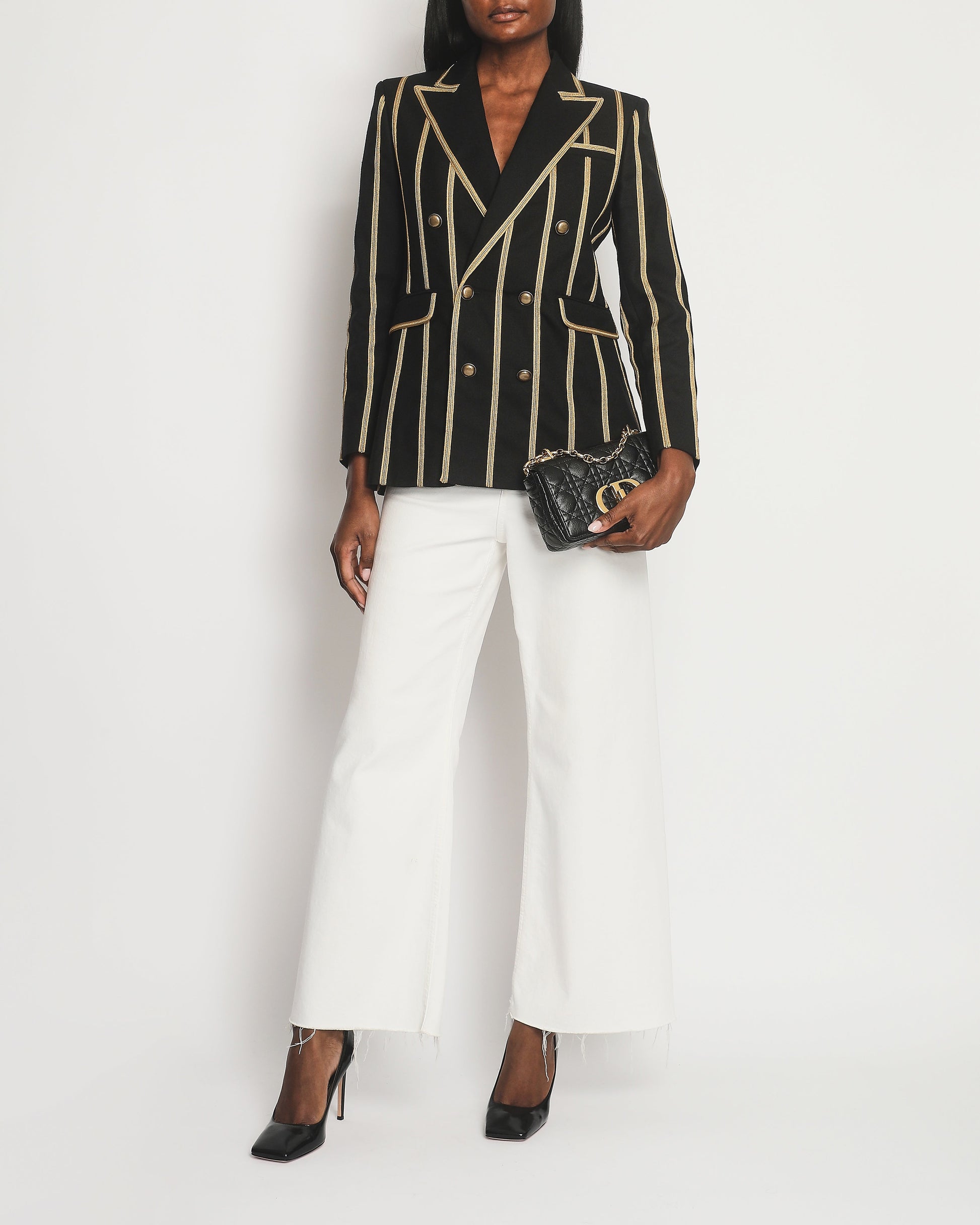 Saint Laurent Black Metallic Stripe Detail Blazer with Antique Gold Button Detail Size FR 38 (UK 10)
