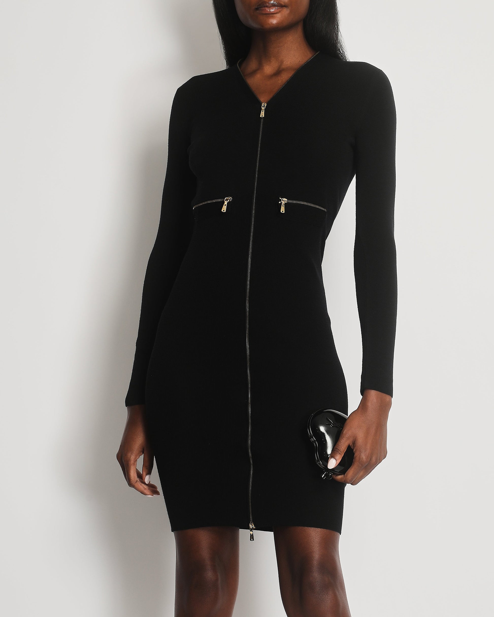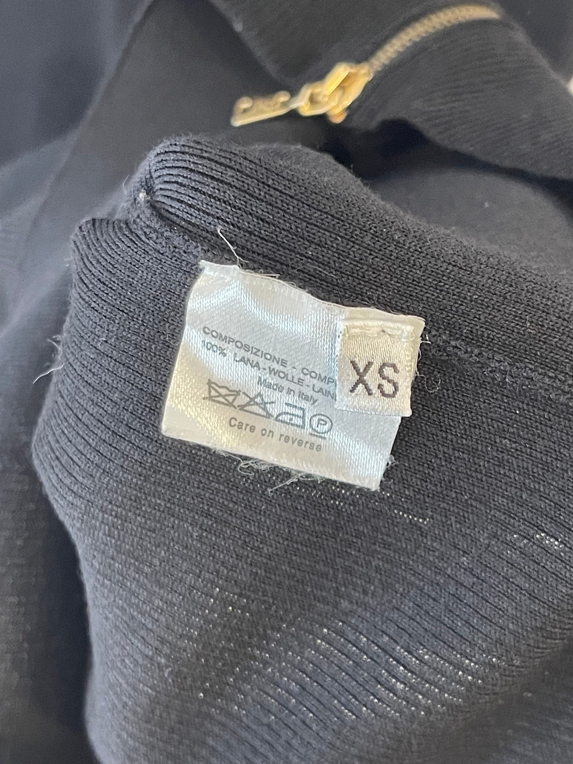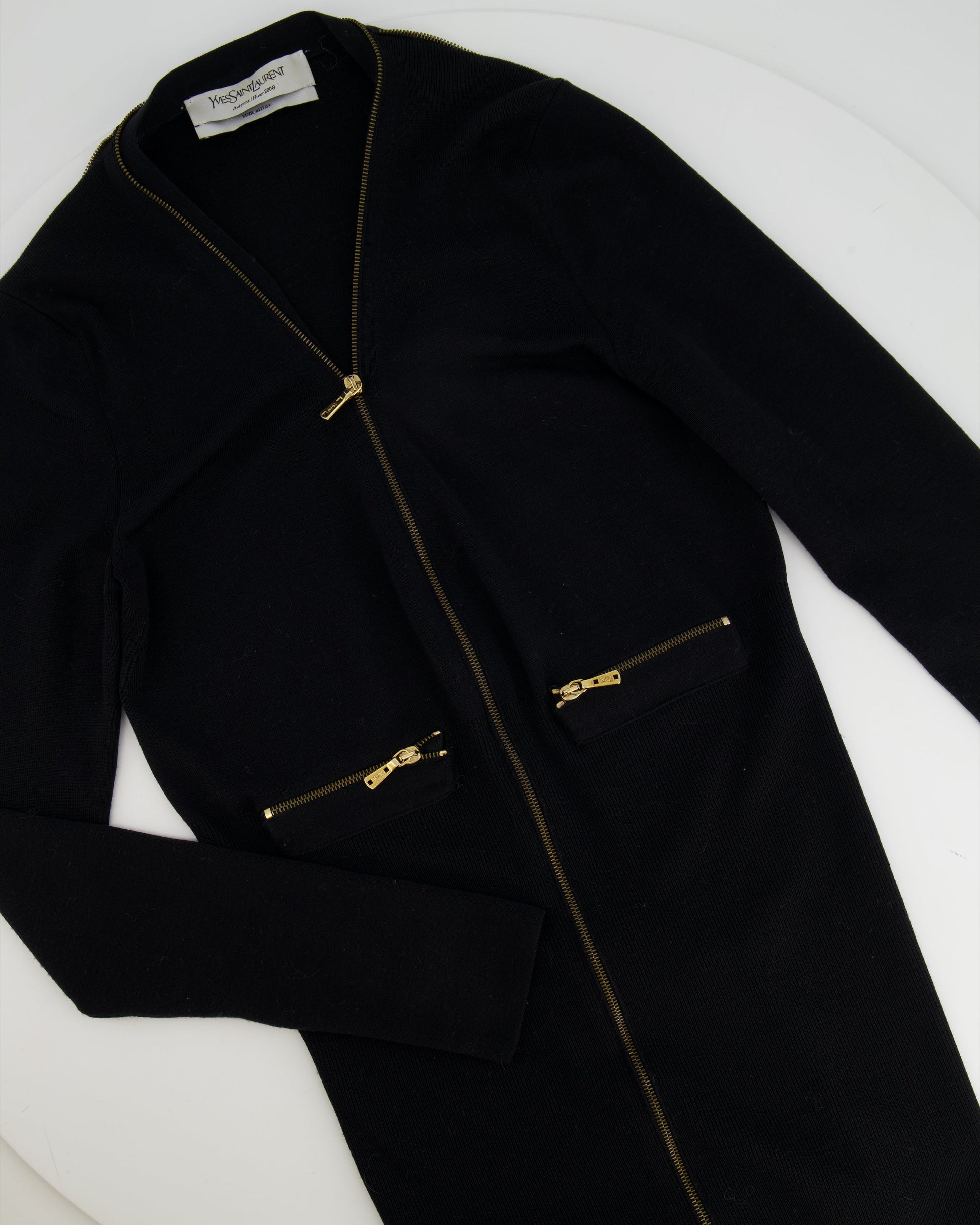 Saint Laurent Fall Winter 2008 Black Midi Knit Dress with Gold Logo Zip Details Size XS (UK 6)
