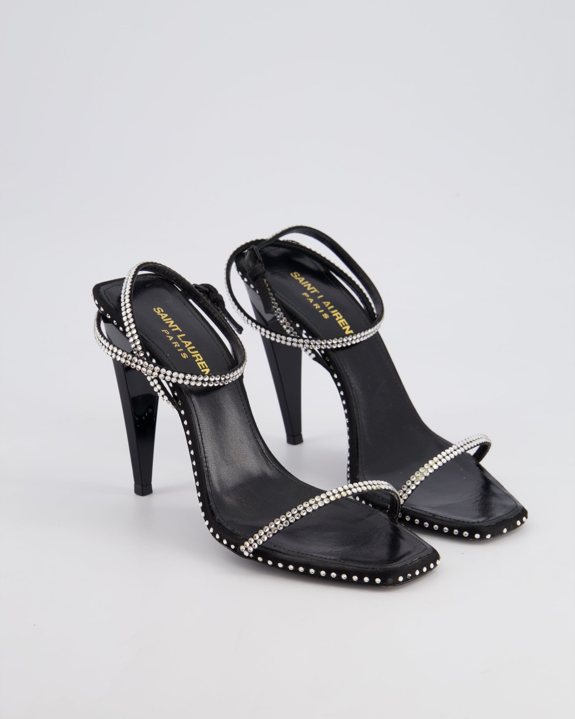 Saint Laurent Black Plexi Heel Sandal Heels with Crystal Detail Size EU 37