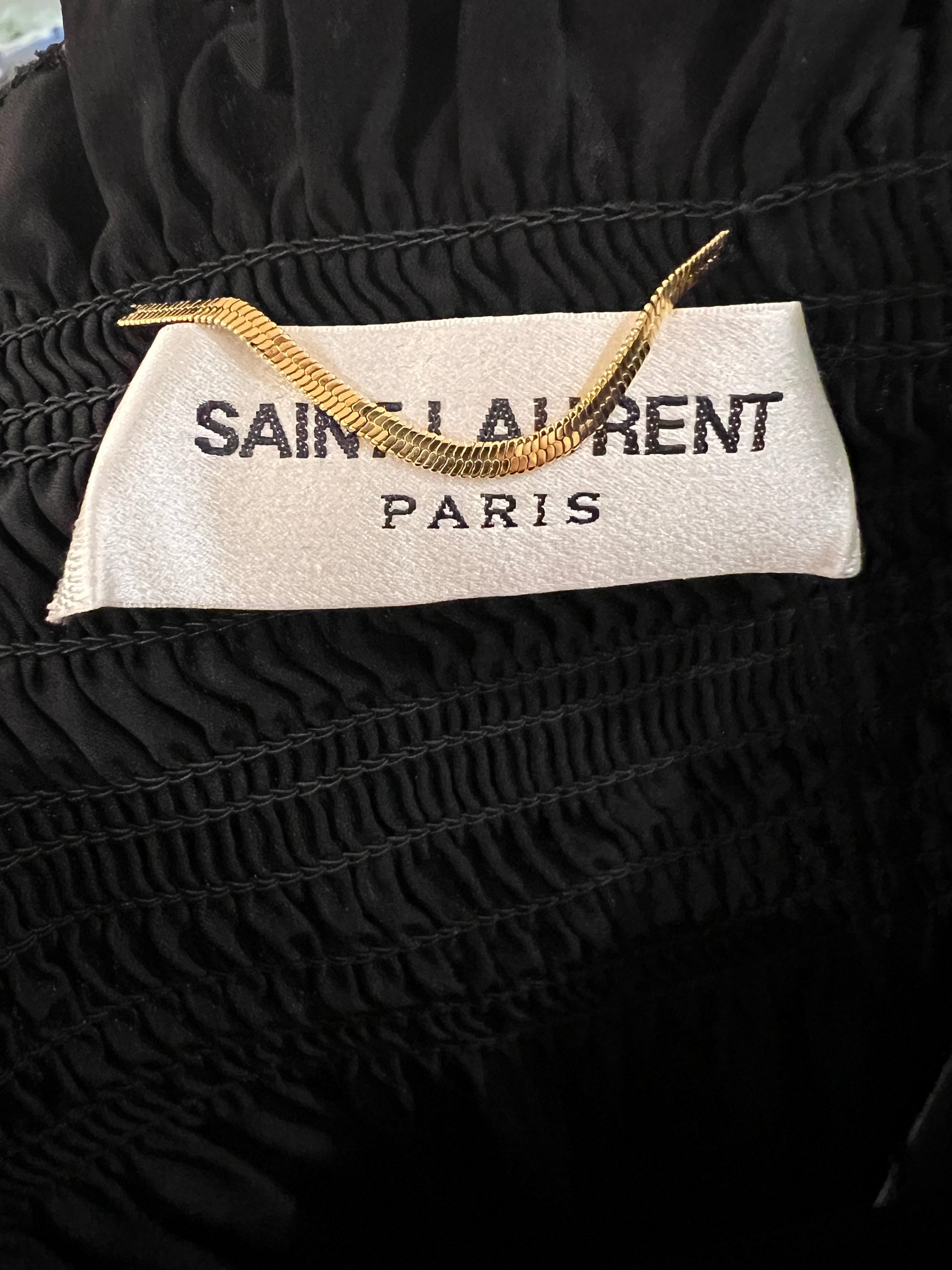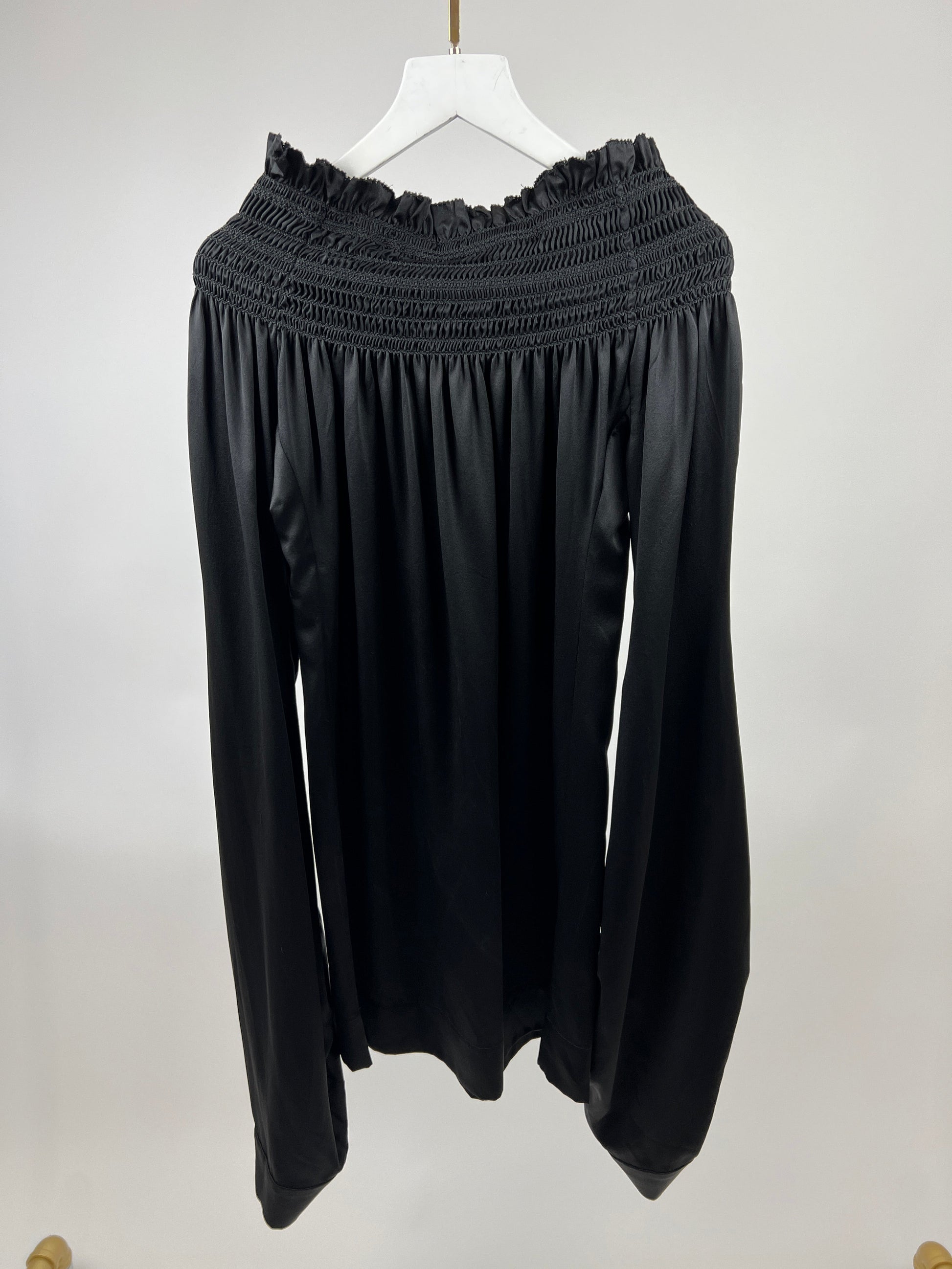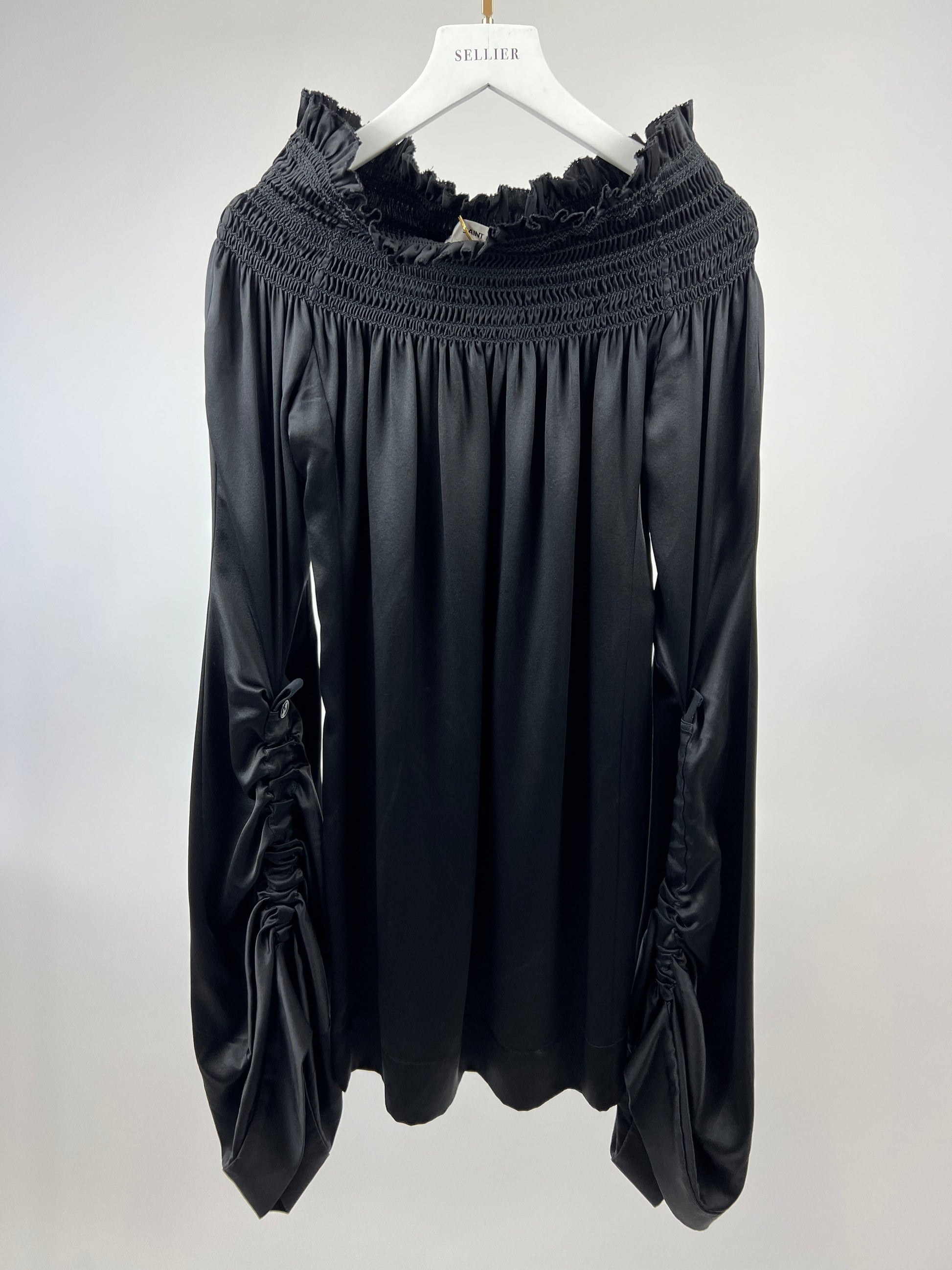 Saint Laurent Black Silk Off the Shoulder, Long Sleeve Mini Dress with Sleeve Detail Size FR 36 (UK 8)