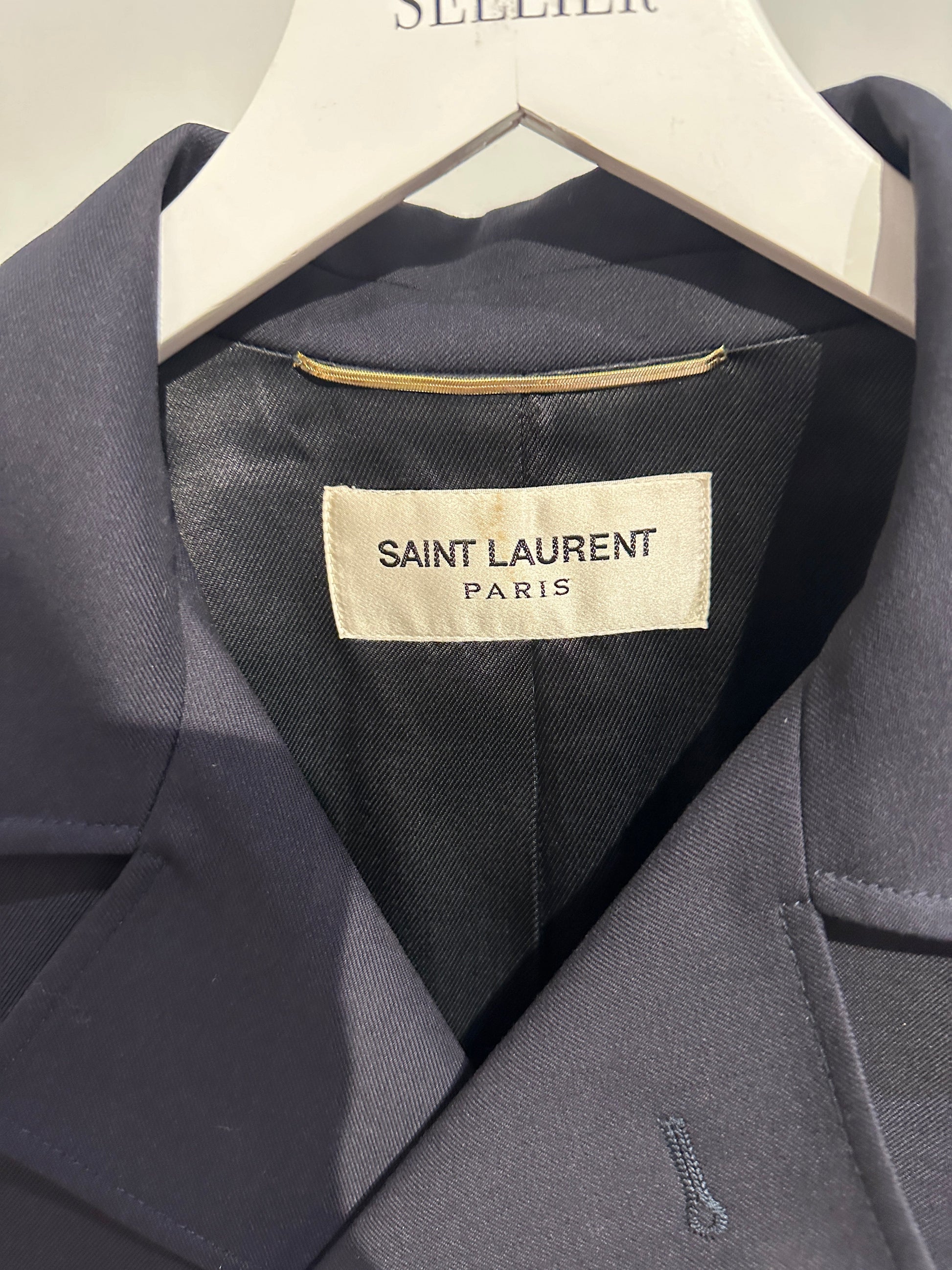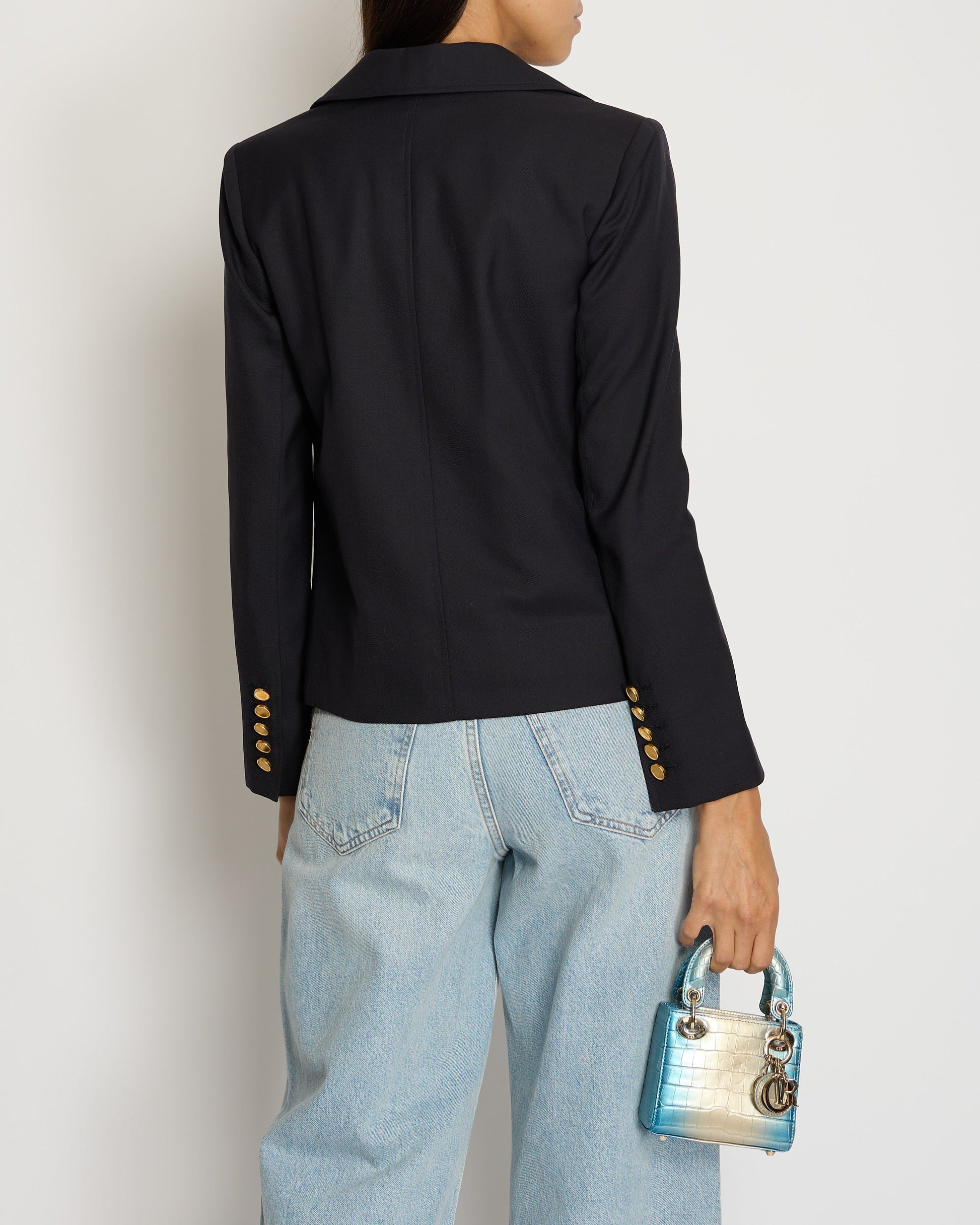 Saint Laurent Navy Double-Breasted Jacket with Gold Button Detail FR 34 (UK 6)