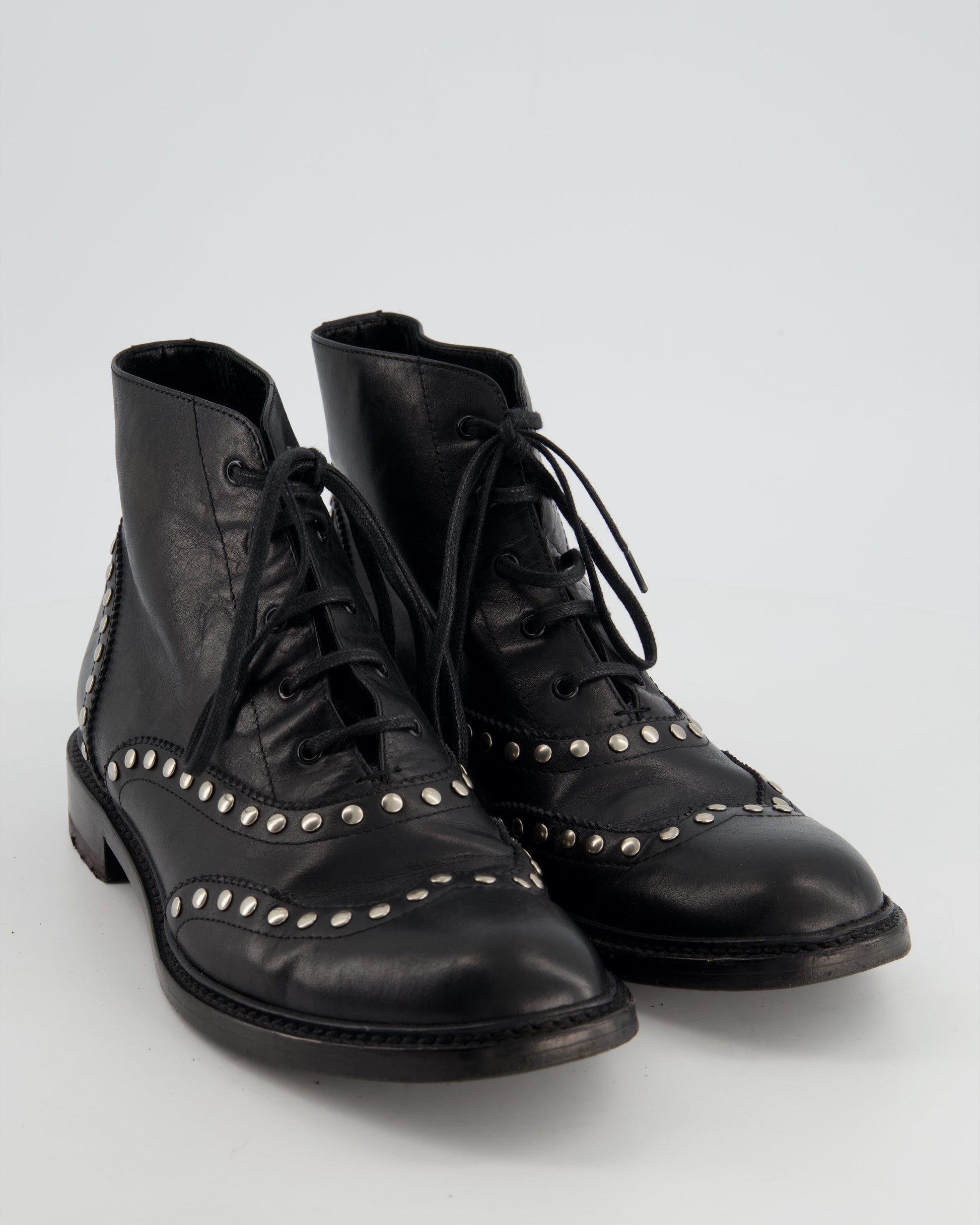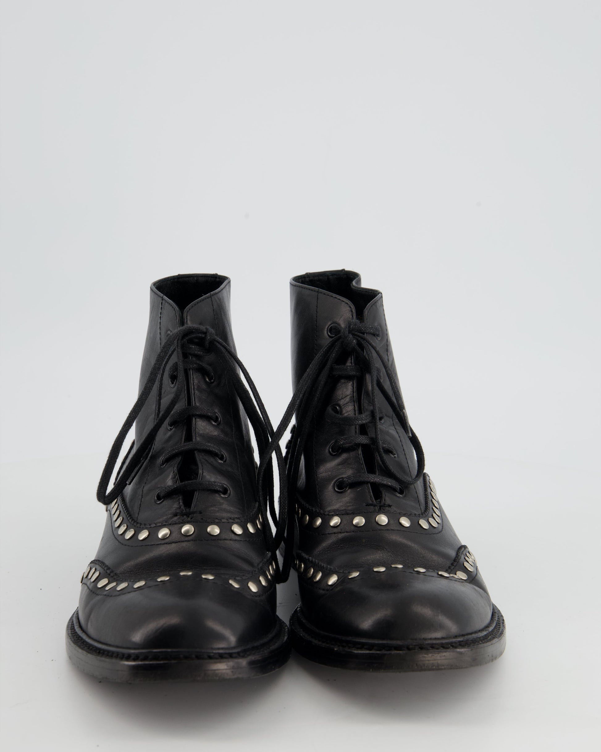 Saint Laurent Black Leather Studded Ankle Boots Size EU 38.5