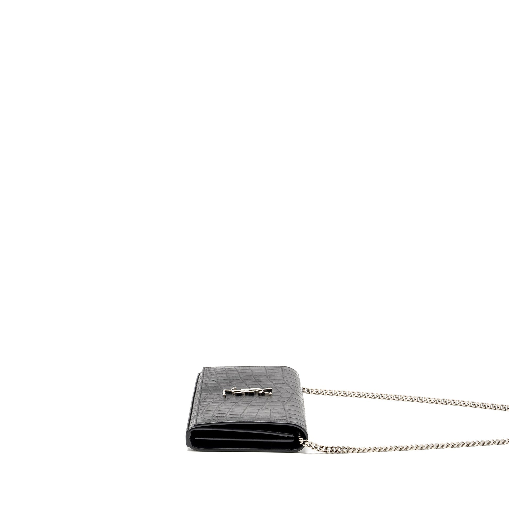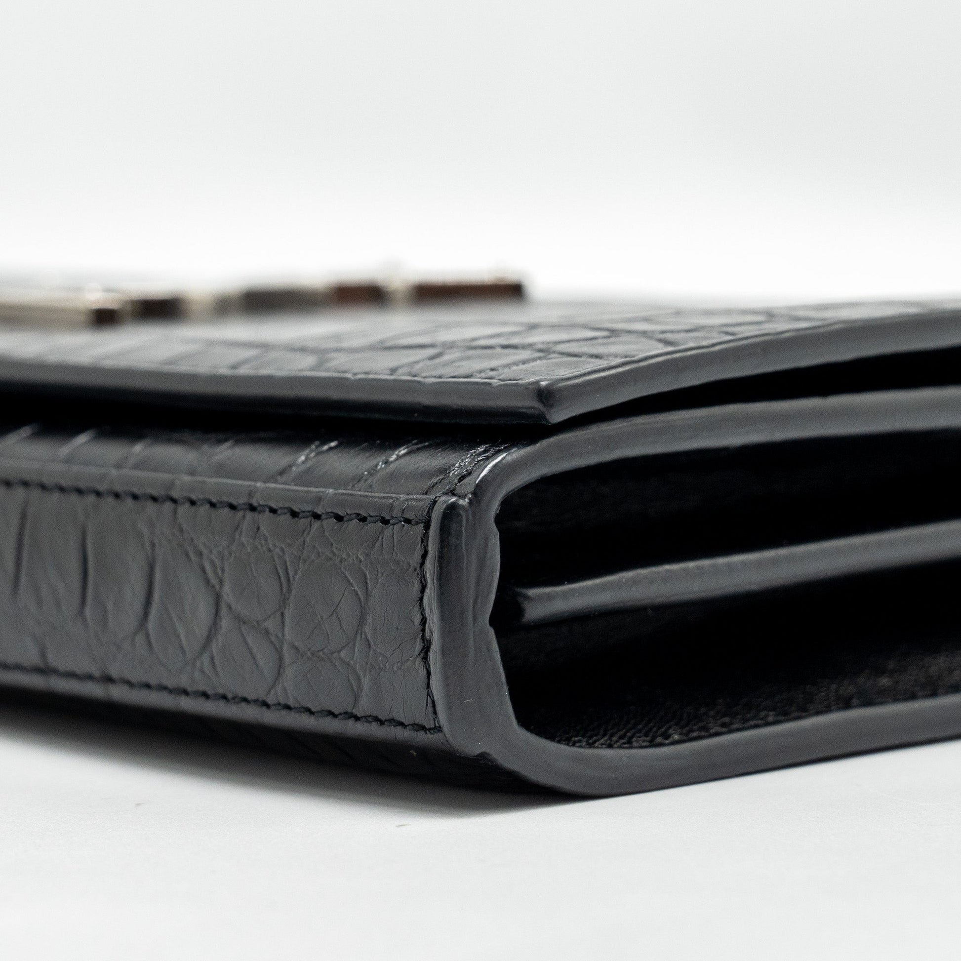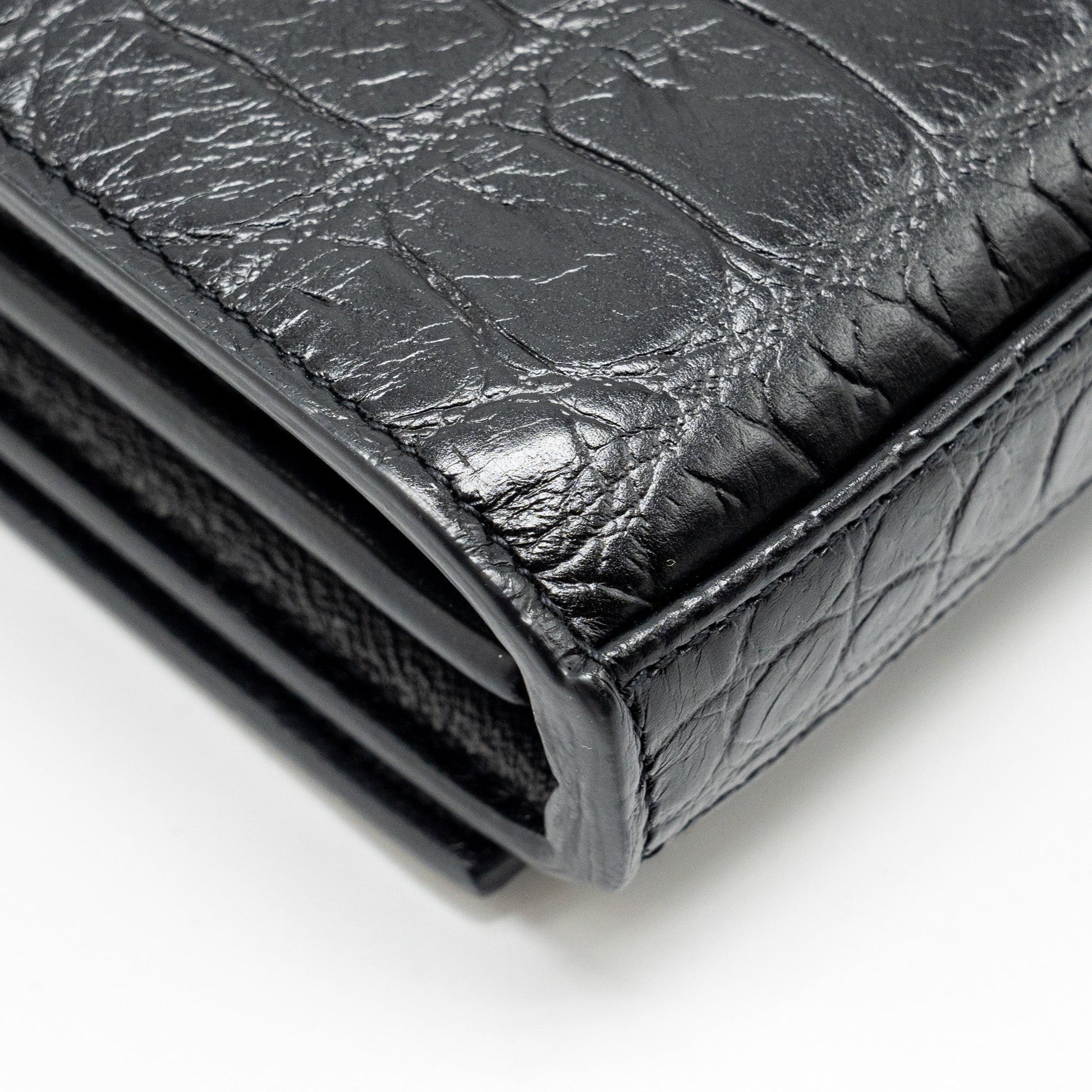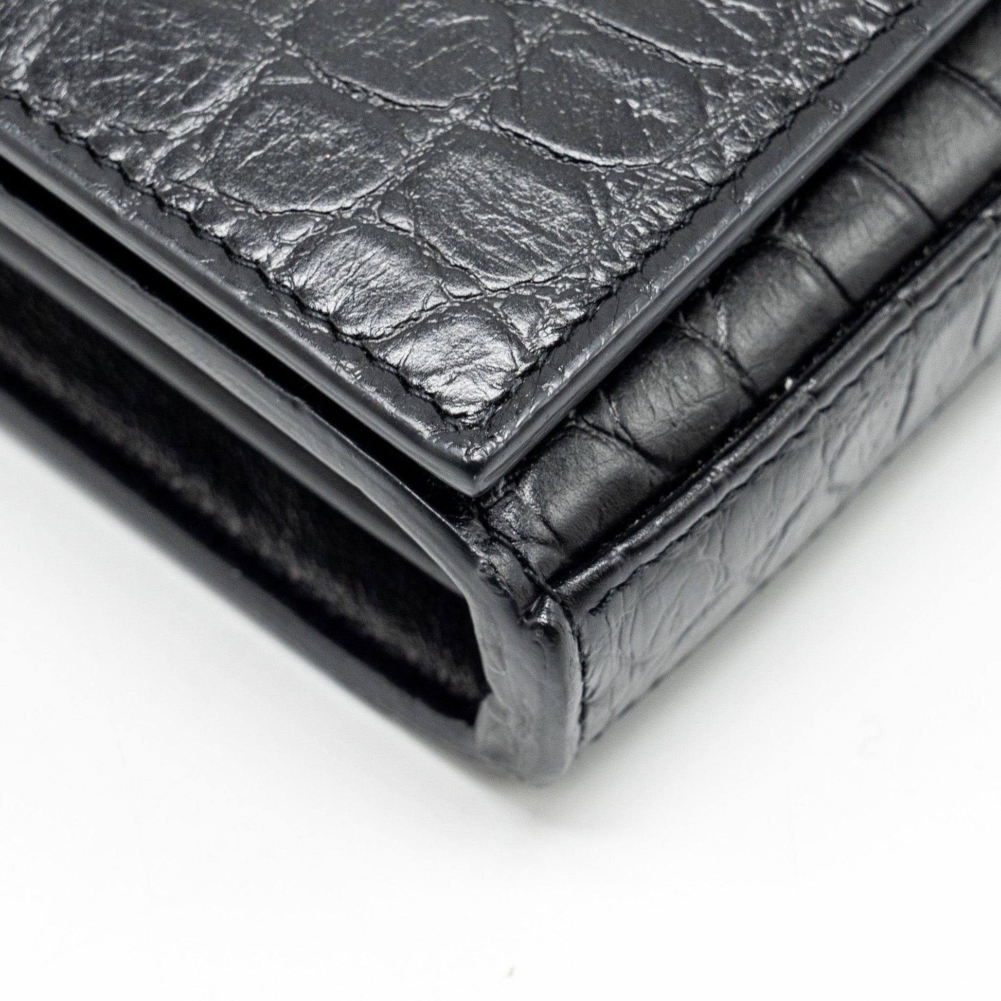 SAINT LAURENT / YSL Classic Chain Wallet Croc-Embossed Calfskin Black SHW