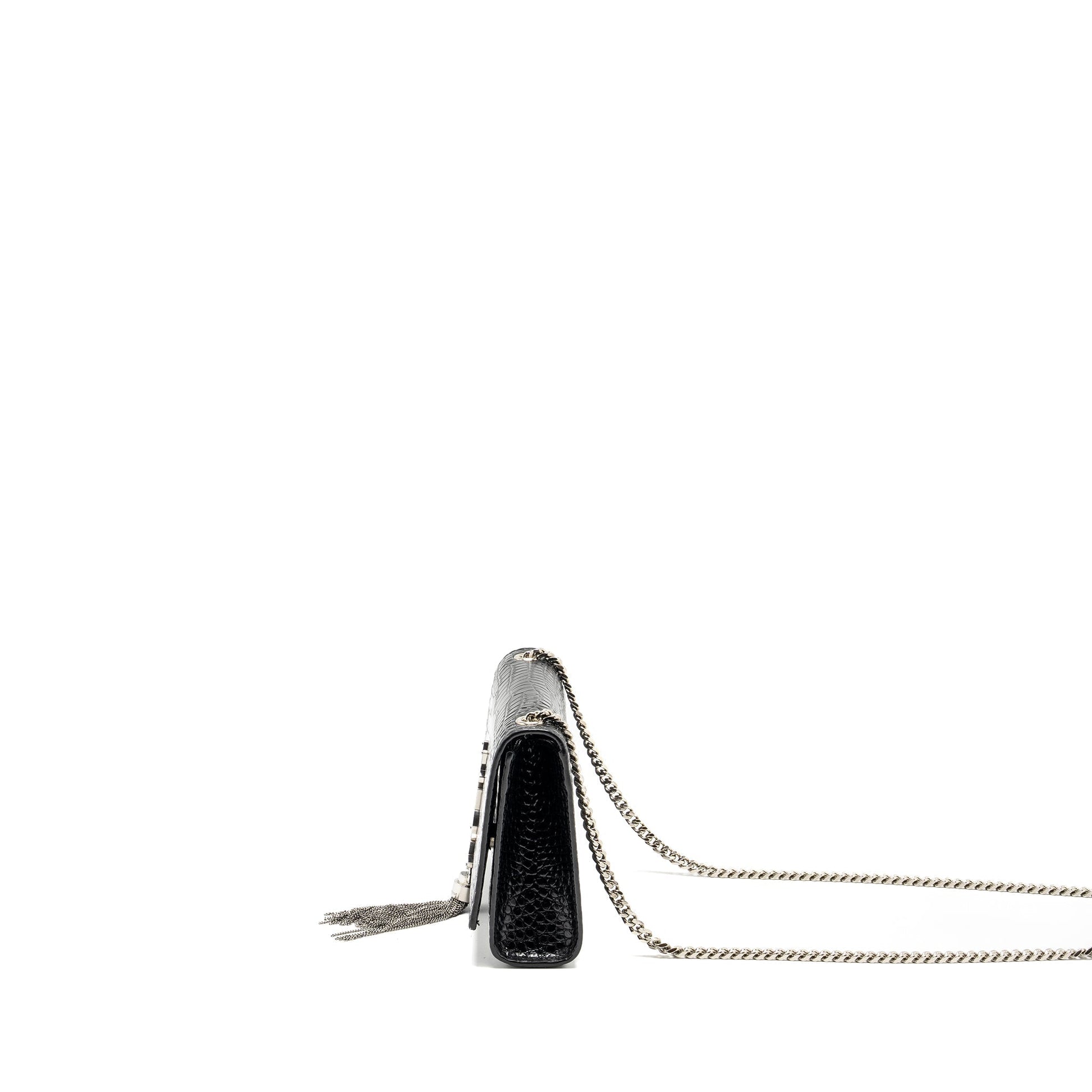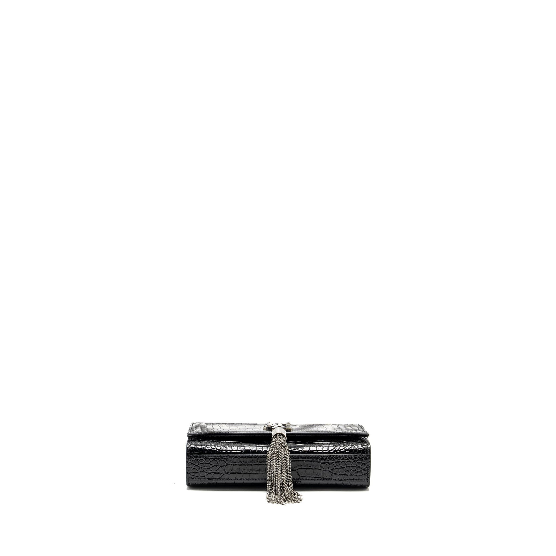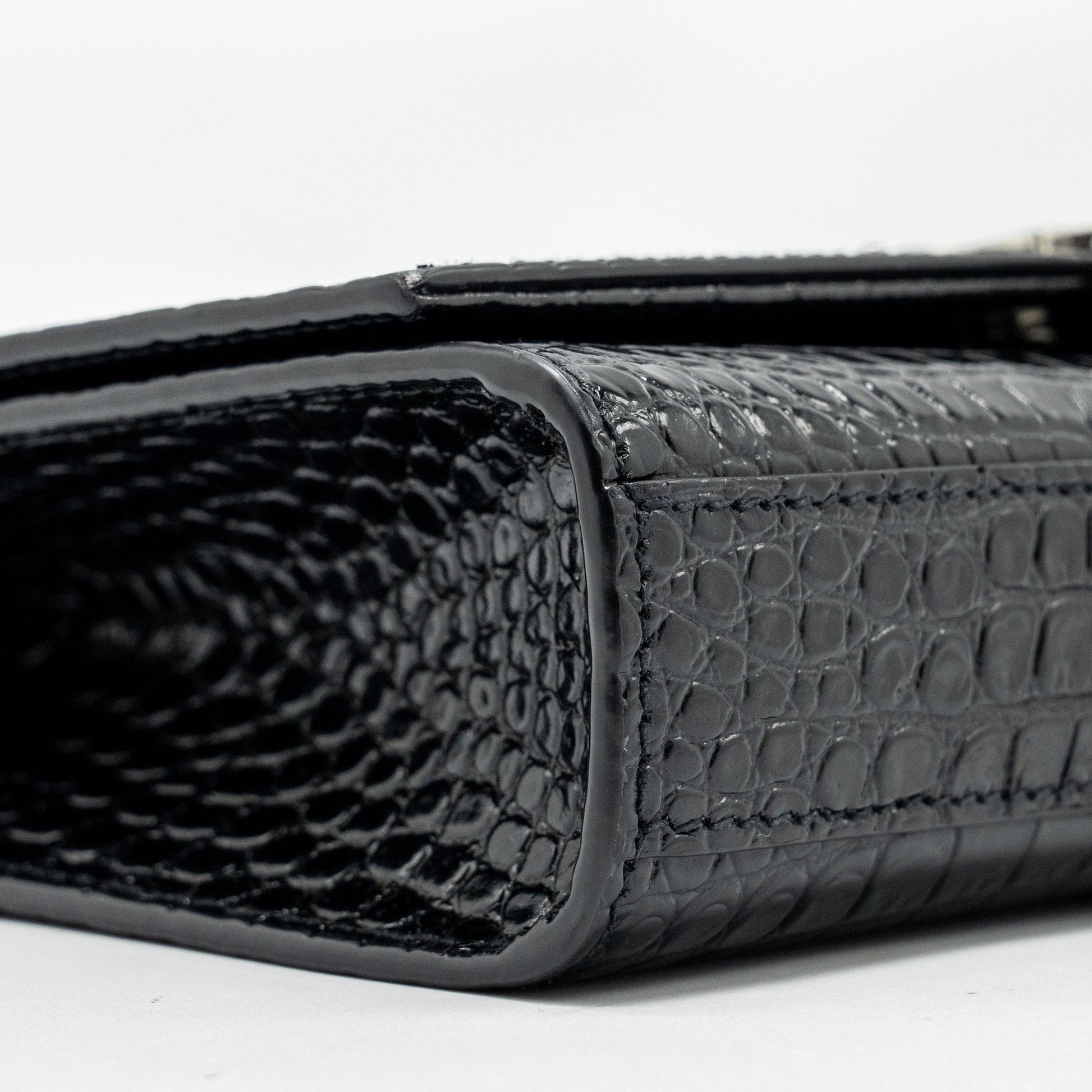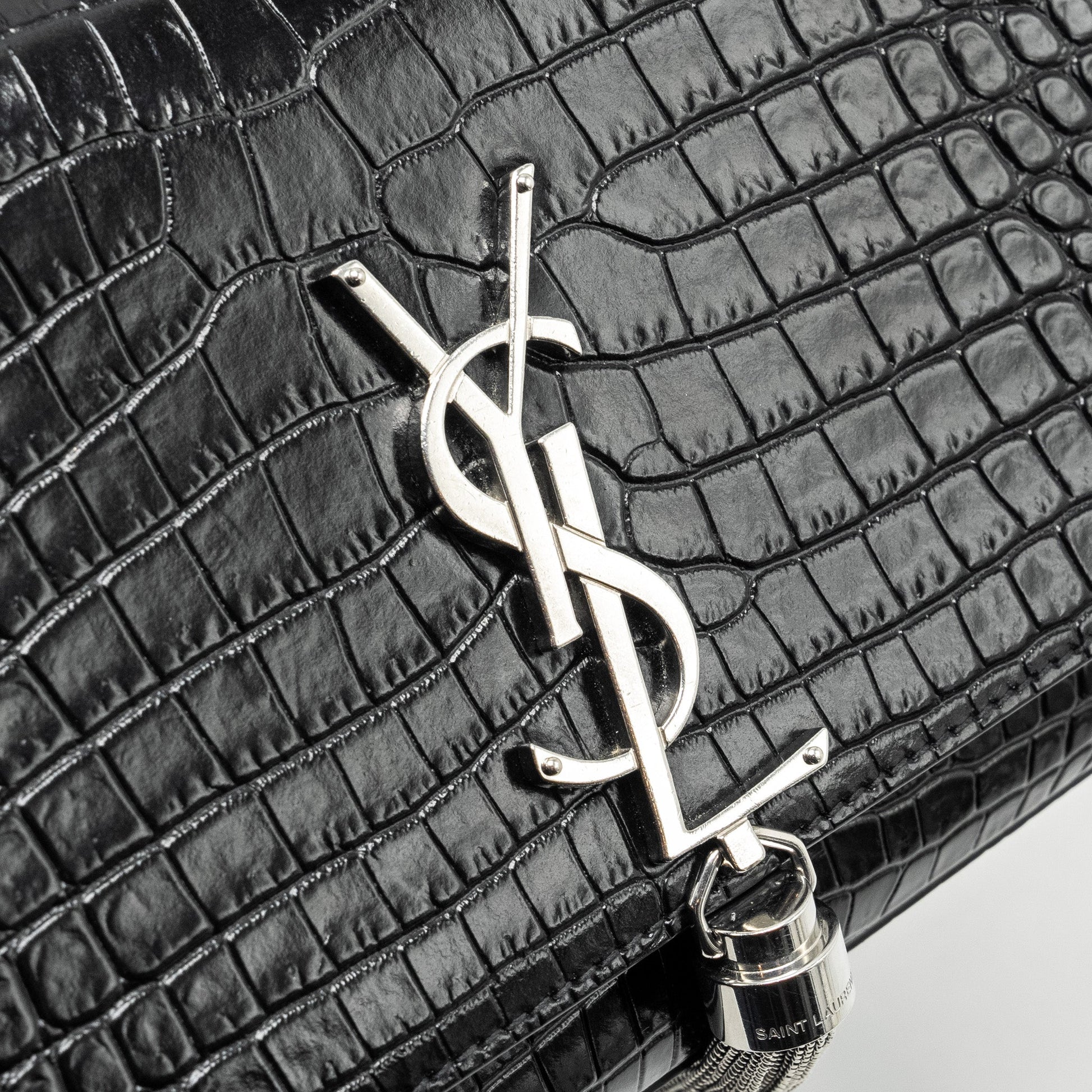 Saint Laurent /YSL Kate Small Chain Wallet With Tassel in Crocodile-Embossed Black SHW