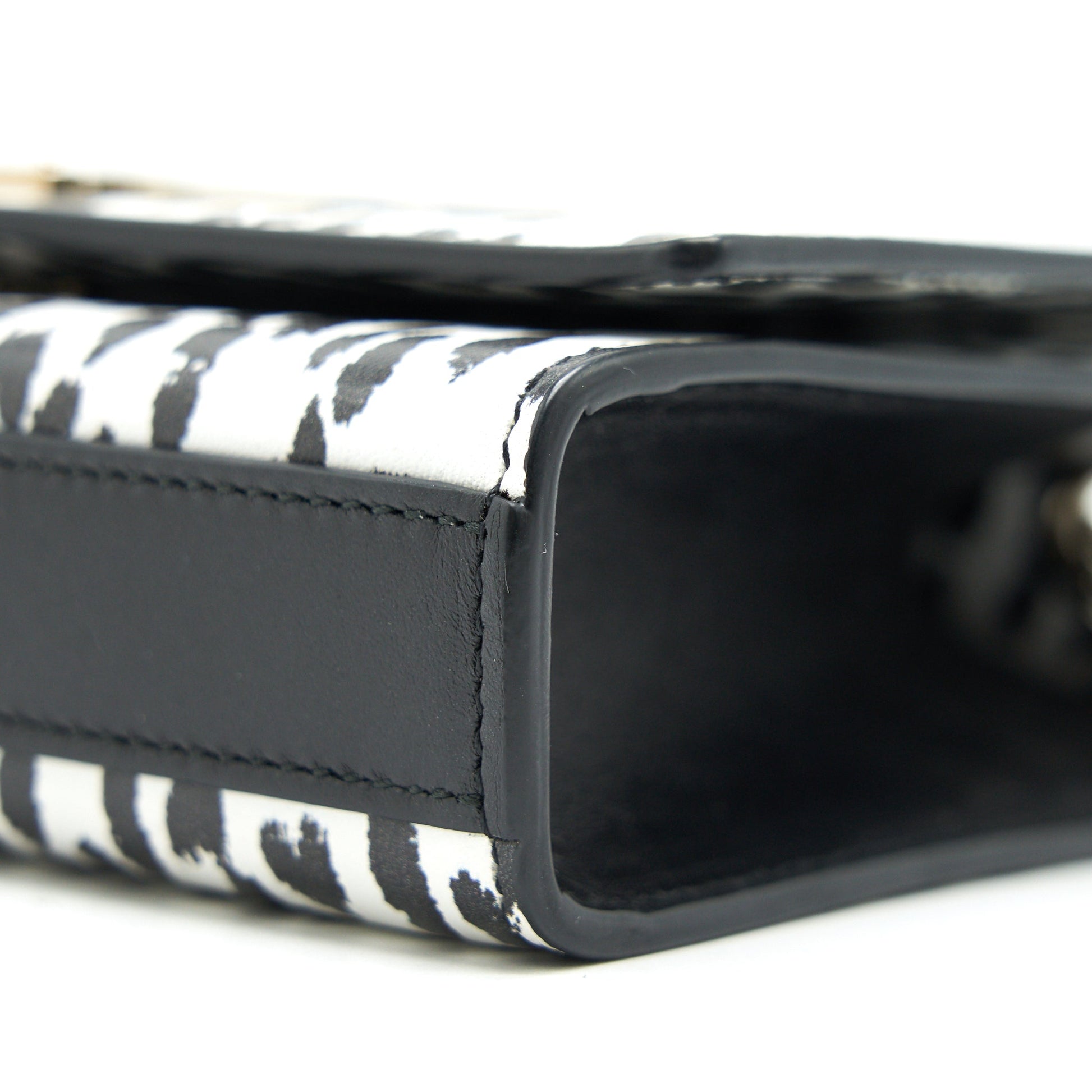 Gently New (This item is in New condition with slight scratches and dents at bottom, on black leather area and on hardware. Very light mark near logo.)