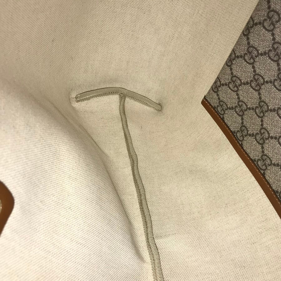 There are wrinkles, creases, and scrubscratch on the leather at the opening.