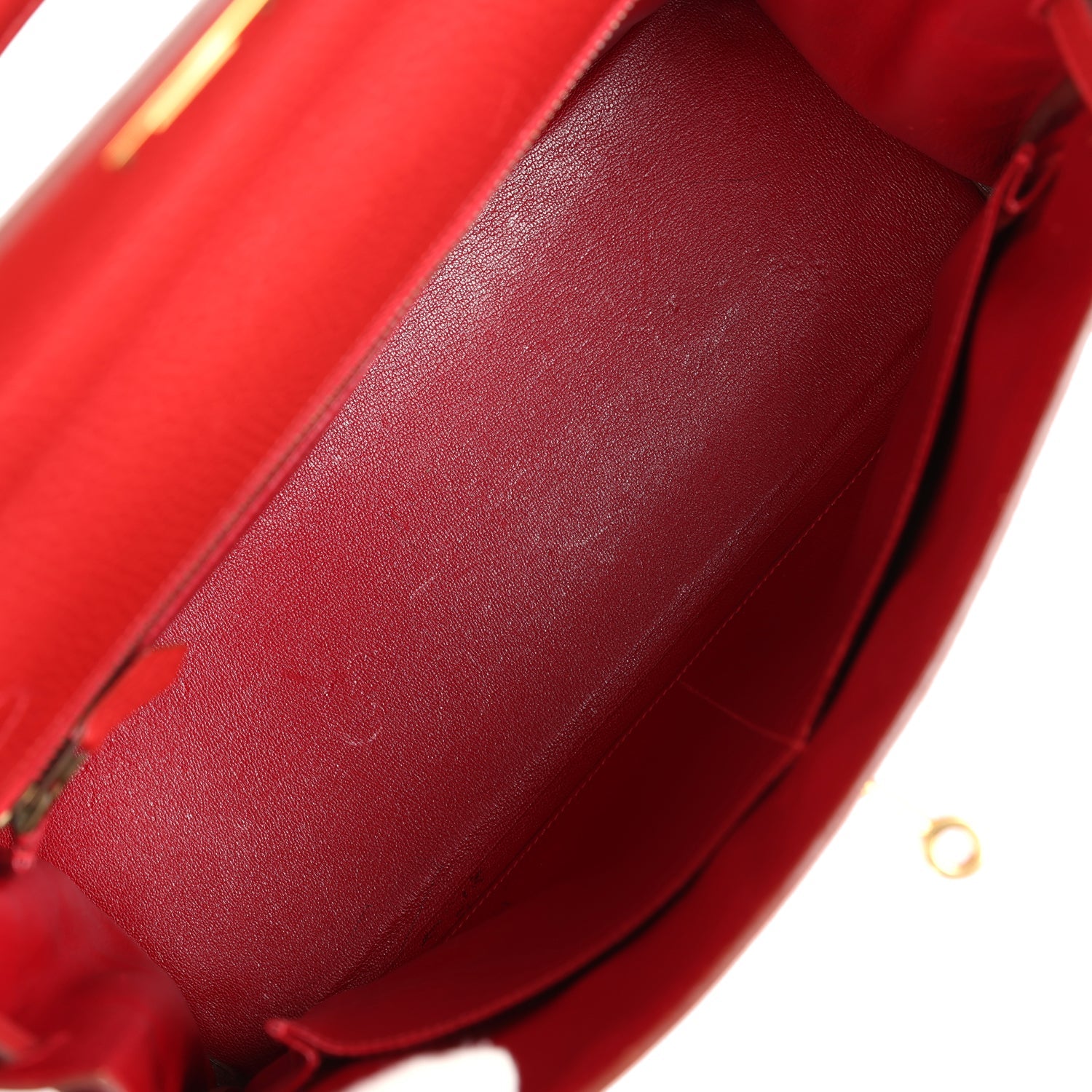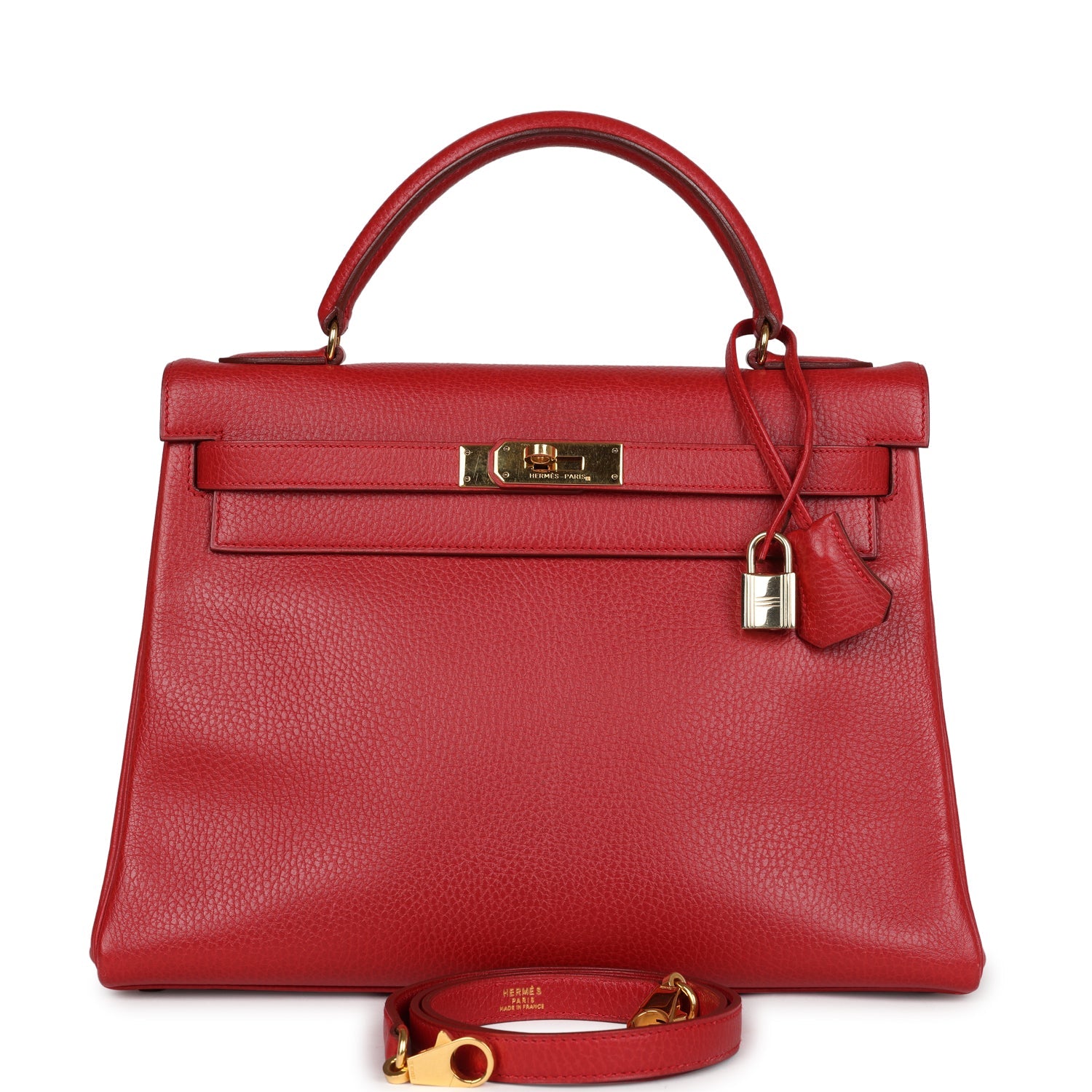 Vintage Hermes Kelly Retourne 32 Rouge Vif Ardennes Gold Hardware